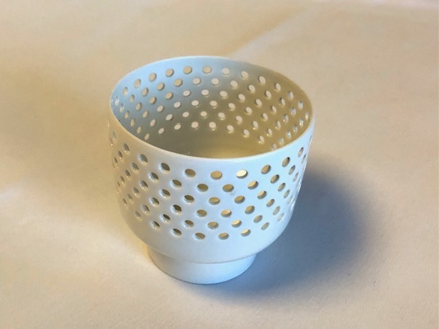 ENN scandinavian design_SELECT / from Finland ーーーーーーーーーーーーーーーーーーーーー ARABIA “Nordica” キャンドルホルダー ■ メーカー:ARABIA(アラビア) ■ シリーズ:Nordica(ノルディカ) ■ デザイン:Richard Lindh(リカルド・リンド) ■ カラー:白 ■ サイズ(約):直径7.3 cm × 高さ7 cm ■ 素材:CERAMIC(陶磁器) ■ 製造年:1970 - 80年代 ■ コンディション:★★★☆☆ 3.9 ーーーーーーーーーーーーーーーー ARABIA “Nordica” キャンドルホルダー "Nordica" Richard Lindh(リカルド・リンド)によって手掛けられ、1970 - 88年の間作られました。異径のカップの側面に約4 mm程の穴が無数に開けられている感じで、その穴から木漏れ日の様に映し出される灯りが魅力的なデザインのキャンドルホルダーになります。 乏しい経験ではございますが、陶磁器製のキャンドルホルダーとの出合いは多くは無く珍品の香りがプンプンして来ます。 経年による風合いの変化、軽い釉薬ムラや内面底部のこすれの様な跡など少し感じる箇所はありますが、使用感は少なめに感じられ、目立つ擦れ、キズ、汚れなど見当たらず、欠けや割れなど見られないことから、この年代の陶磁器製のキャンドルホルダーとして概ね良好な状態と言えます。 【表面】 真っ白なフォルムにドット穴を纏ったキャンドルホルダーは水玉模様を壁などに映し出す楽しみも味わえます。丸穴内部の釉薬ムラは若干見られる可能性はありますが綺麗な状態です。 【内面】 軽いこすれスジの様な跡(画像3)は見られるものの、概ね綺麗な状態と言えます。 【縁】 綺麗な状態です。 【裏面】 綺麗な状態です。藍色で ARABIA 旧ロゴのバックスタンプが残されています。 テーブルのセンターなどにセットしたりするのに程良いサイズ感のキャンドルホルダーは木漏れ日の様にあかりを灯すことでしょう。壁際などに置いても表情が異なるので色んなシーンをお試し下さい。
