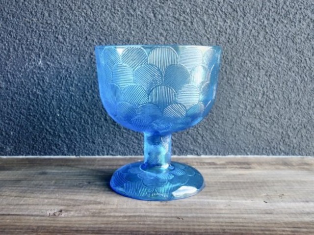 ENN scandinavian design_SELECT / from Finland ーーーーーーーーーーーーーーーーーーーーー Nuutajarvi / ARABIA “Miranda”(ブルー)巨大ボウル ■ メーカー:Nuutajarvi / ARABIA(ヌータヤルヴィ / アラビア) ■ シリーズ:Miranda(ミランダ) ■ デザイン:Heikki Orvola(ヘイッキ・オルヴォラ) ■ カラー:ブルー(スケルトン) ■ サイズ(約):直径18 cm × 高さ19.8 cm ■ 素材: Glass(ガラス製品) ■ 製造年:1970年代 ■ コンディション:★★★☆☆ 3.9 ーーーーーーーーーーーーーーーー Nuutajarvi / ARABIA “Miranda”(ブルー)巨大ボウル お初にお目にかかったクリア色の時は思わず "巨大ミランダ" と声が出てしまいました。 今回はブルーとのご縁を頂きました。 "Miranda" は Heikki Orvola(ヘイッキ・オルヴォラ)によって1970年代に手掛けられたシリーズで、花びらが「ウロコ・おはじき」みたいに描かれた特徴を持つ大変可愛らしいデザインです。土台の裏面にまで可愛らしく花びらが象られ、どこから見ても美しい模様とフォルムは圧巻です。こちらはブルー色の脚付の巨大ボウルです。美しくデザインされた土台(座)がしっかりとボウル部分を支えているようなデザインで、ぽってりとした可愛らしい表情を楽しませてくれる逸品です。 大きさは約 直径18 cm × 高さ19.8 cm ほど。ボウルの側面には段々と大きくなる花びらが広がっていくような可愛らしい柄が描かれ象られ凸凹しておりますが、内面はツルッと滑らかで手入れもし易くなっています。支柱部分にも花びら模様が描かれ、土台(座)の部分には花模様の全貌が描かれており、一般的に座の部分はそう目にとまる部分ではないので、どこかないがしろにされがちですが抜かりなく美しくデザインされています。 細かな擦れや微かなこすれ、座の表面に細キズなどの使用感は薄っすら少し見られはするものの、目立つ擦れ、キズ、汚れなど見当たらず、欠けや割れなど見られないことから、時を刻んで来たガラスの器として概ね良好な状態と言えます。ゆらぎ、ガラスの繋ぎ目の様な跡などは一点一点手作業で作られた味、証と捉えて頂ければ幸いです。※ガラス製品特有の模様ムラ、加工時の気泡や小キズなどの個体差は出ている可能性はございます。 【表面】 一部製作ムラ(画像5)のような跡はあるものの、細かな擦れなど薄っすら僅かに感じる程度で概ね良好な状態と言えます。花びら模様が素朴な感じで可愛らしく美しく描かれ象られています。 【内面】画像6 底中央の細スジのような跡や側面の上の方に細かな製作ムラが微キズのように見える跡(画像7)など薄っすら感じるものの、いずれもキズのような跡ではなく概ね良好な状態と言えます。 【縁】画像8 こすれや薄くもりのような跡は薄っすら僅かで概ね良好な状態と言えます。 【支柱】 支柱部分にまで花びら模様が描かれております。綺麗な状態です。 【台座】 表面に微細キズ(画像10,11)は少し見られたりするものの、細かな擦れなど座上(画像12)に少し見られる程度で概ね良好な状態と言えます。※小さな気泡は少し見られる状態です。 ガラス製品は繊細なものも多くある中で、この "Miranda" はガラスの厚み重量感が比較的あるので丈夫で比較的扱い易い器です。こちらは普段のサイズよりかなり大きいと思いますので、パーティーなどでフルーツポンチや氷を入れたりしてお酒をボトルごと冷やしたりしても活躍してくれそうです。なかなか珍しいサイズ感だと思いますので一期一会をお楽しみ下さい。