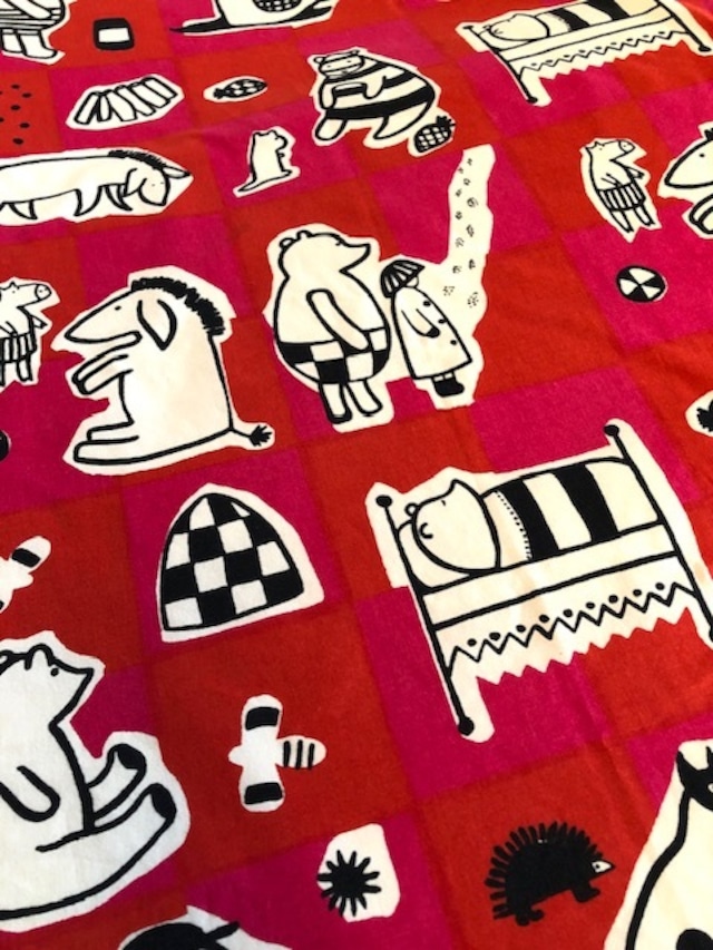marimekko "NALLE"(赤)vintage TEXTILE 端切A