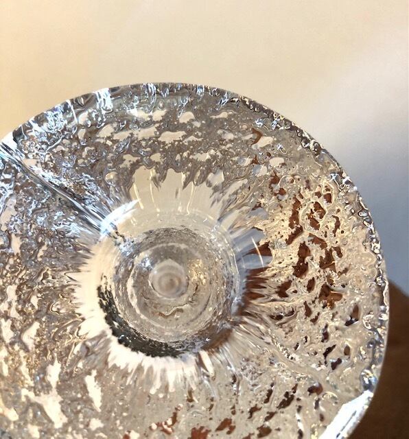 経年による風合いの変化は出ている可能性はありますが、微細なキズなど裏面座に少し感じる程度で、欠けや割れなど見られないことから、時を刻んで来たガラス製品として概ね良好な状態と言えます。※ガラス製品特有のゆらぎ、シワやスジ、加工時の小さな気泡やキズなどの個体差は出ている可能性はございます。