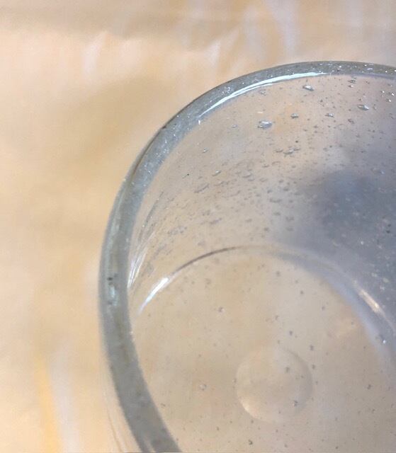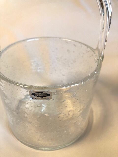 大小の泡の数々。その表情はまるで人間洗濯機に入った感覚に陥ります。(入ったことはありませんが)外側はツルッと滑らかな感じ、内面は泡を触っている様な肌触りも独特です。綺麗な状態です。むしろ精巧で綺麗が過ぎるのは、この子には似合わないと思ってしまいます。側面上部に Nuutajarvi ロゴシールが残されています。