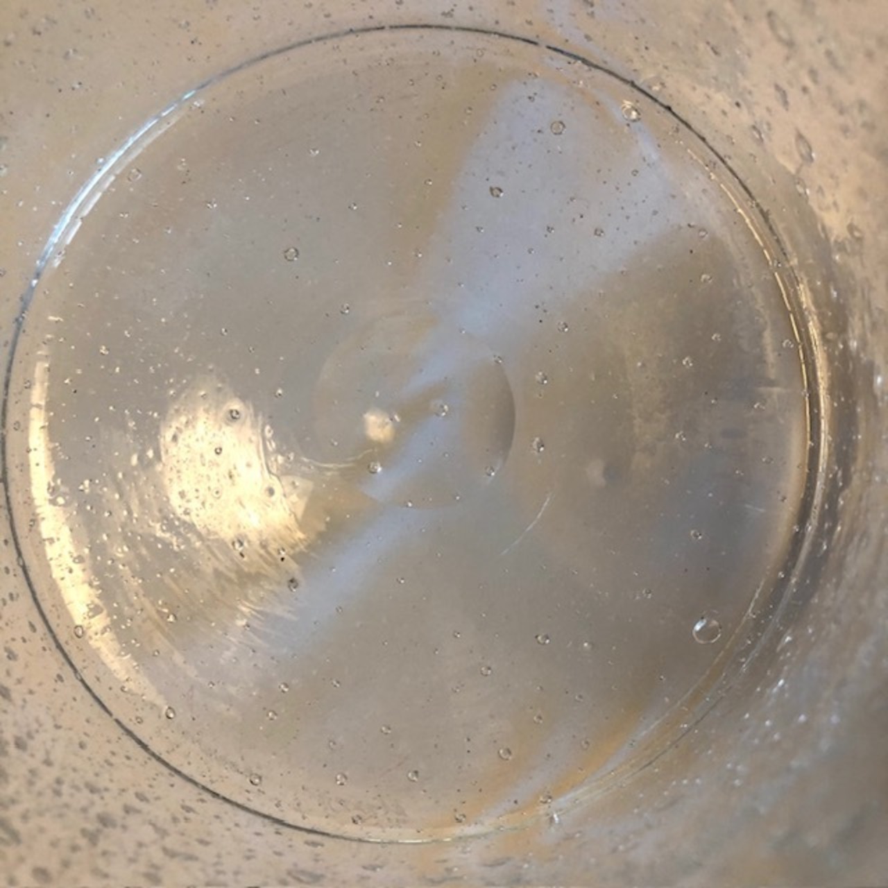 真上から見ると裏面からこちらに少し吸い上げられているようなフォルムですが程良いです。綺麗な状態です。※ガラス内部の小さなくもりの様な跡は製作跡と思われます。