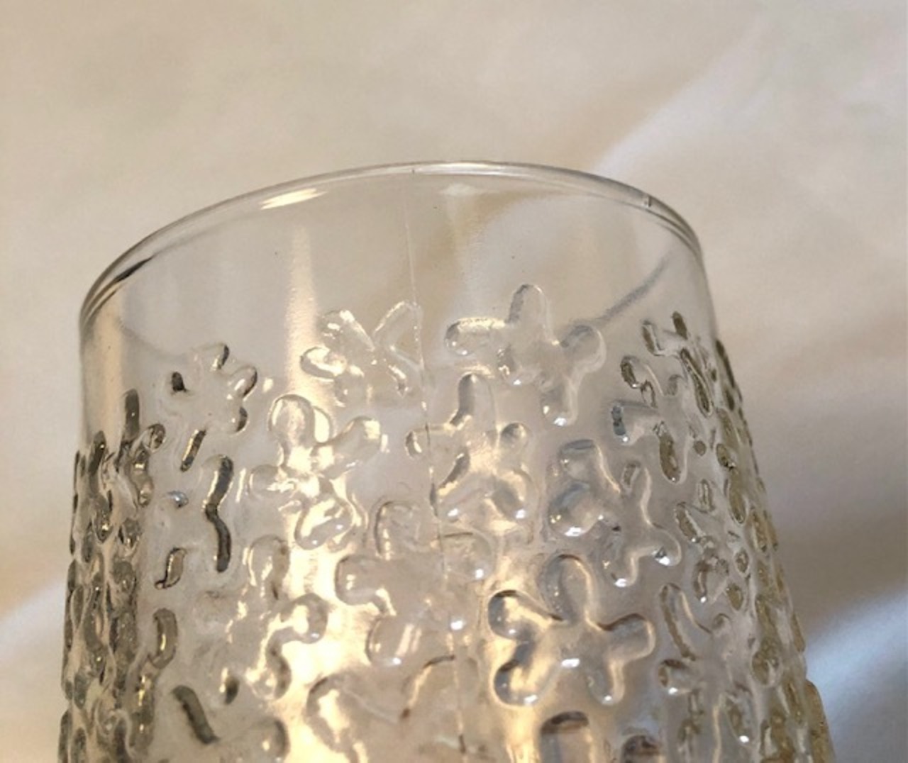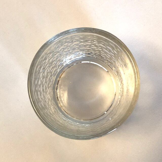 全体的にガラスに厚みがあり、寸胴なフォルムの渋さの中に大変可愛らしい模様が合いまって、見て使って何かとたっぷり楽しめるグラスだと思います。お冷からお酒まで、シーンに合わせお楽しみ下さい。