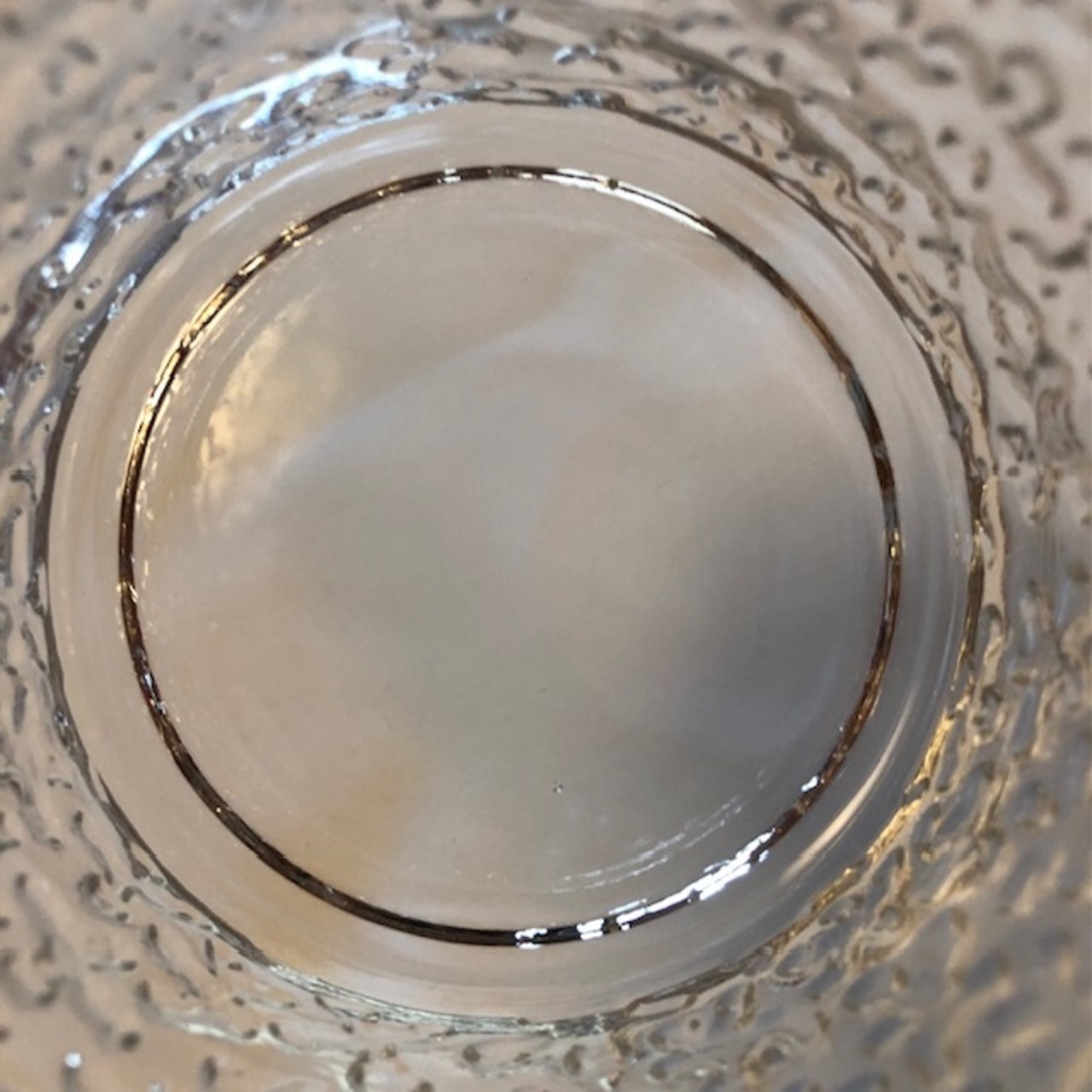 内面底部には模様は無く、製作跡の様な細キズ(画像5 / スジの様 / 裏面画像から見えますが実際には内面にございます。)1つ見られ、ペン先程の小さな気泡は見られるものの、綺麗な状態と言えます。