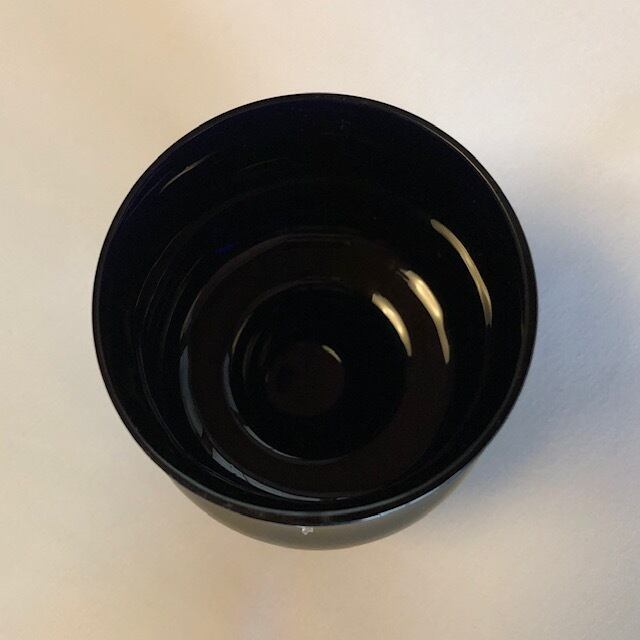 手にしっくり来る鈴蘭の花のようなフォルムが特徴的なグラスをマッドな黒紫の雰囲気でお楽しみ下さい。どんな飲み物と相性がよろしいか探りながら素敵な時間をお過ごし下さい。