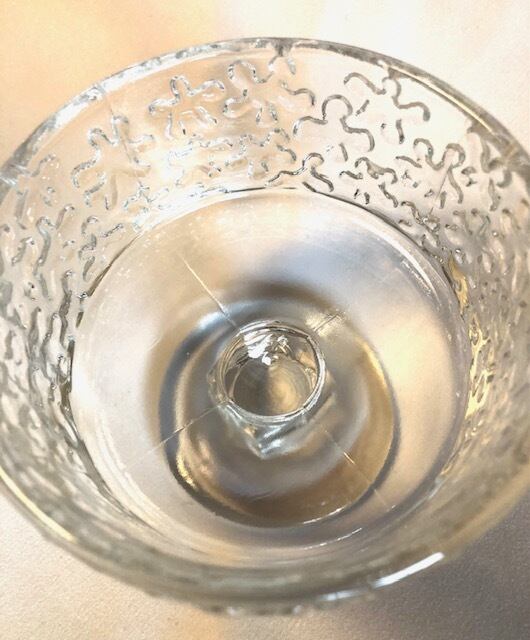 個性的な模様と無地ガラスとのバランスがとても可愛らしい脚付きのボウルはガラスに厚みがあり重厚感のあるどっしりとしたフォルムは、比較的丈夫で扱い易い器と言えます。涼しげなガラスの器にアイスクリーム、かき氷、餡蜜など盛り付けた絵面が目に浮かぶ様です。色々アレンジしながらお楽しみ下さい。