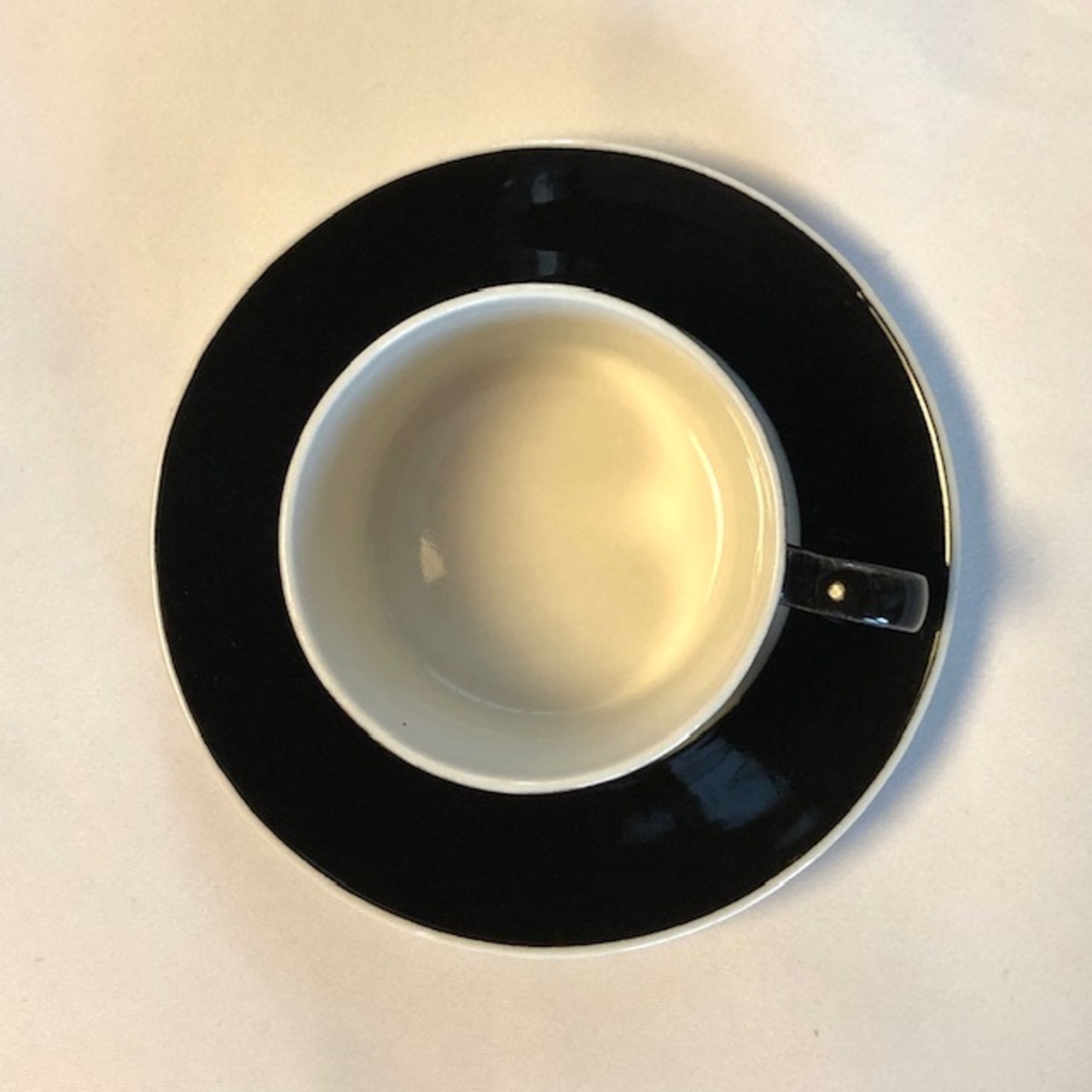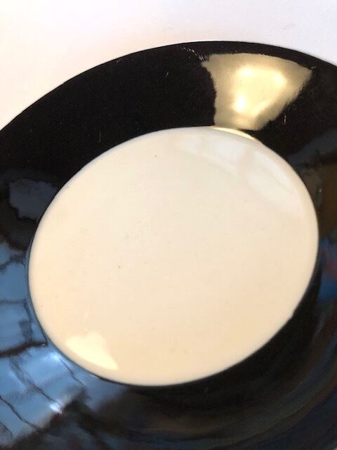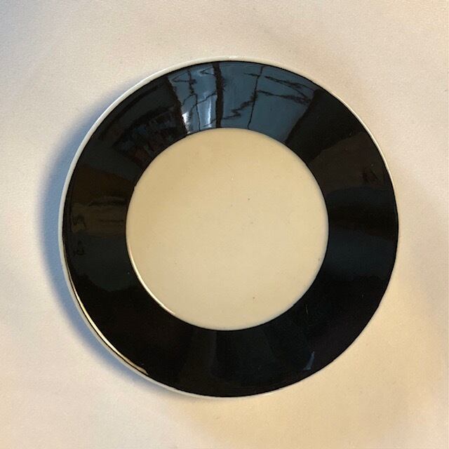 ベースは白でリム部の表面のみがカップと同じブラックデコレートされています。このツートンモノトーンが美しいのです。カトラリー跡と言える細かな擦れや微細キズなど多少見られるものの、薄っすら感じる程度で概ね綺麗な状態と言えます。