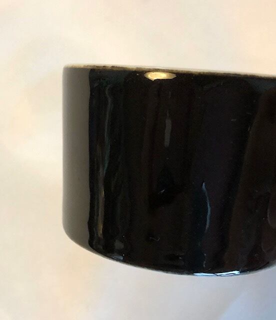 白黒のツートンで、エッジ部の切り返し部のエイジングの様な表情が大変美しく、堅い雰囲気が個性的なカッコイイ器だと感じています。細かな擦れや微細なキズなど多少感じる箇所はあるものの、いずれも目立つ跡ではなく、概ね良好な状態と言えます。