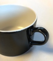 小振りでデミタス向けのカップは側面・持ち手・裏面高台内が艶感のあるブラック、その他はホワイトで、モノトーンツートンカラーになります。ソーサーはリムの傾斜が強く、リム表面にのみカップと同色のブラックデコレートがされています。