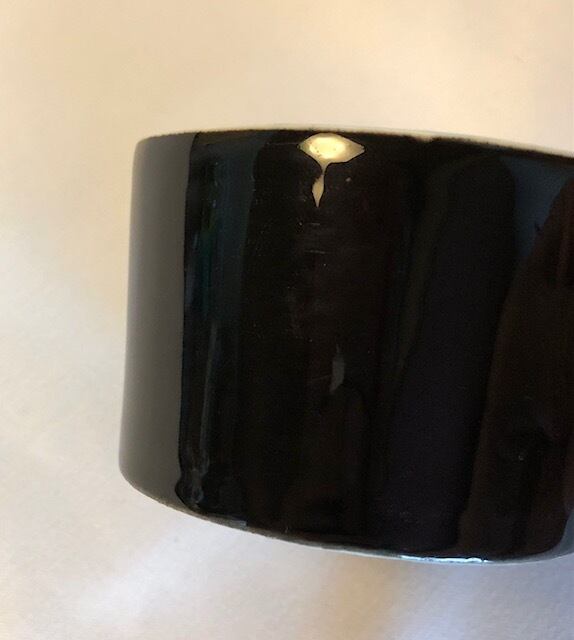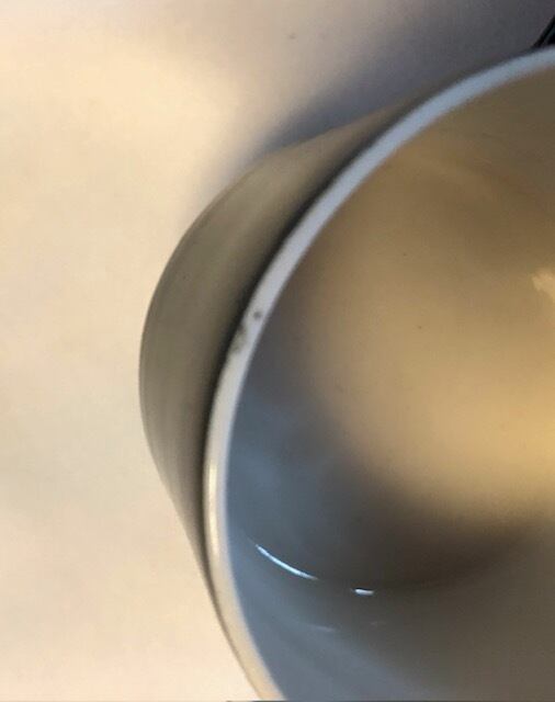 白黒のツートンで、エッジ部の切り返し部のエイジングの様な表情が大変美しく、堅い雰囲気が個性的なカッコイイ器だと感じています。細かな擦れや微細なキズなど多少感じる箇所はあるものの、いずれも目立つ跡ではなく、概ね綺麗な状態と言えます。