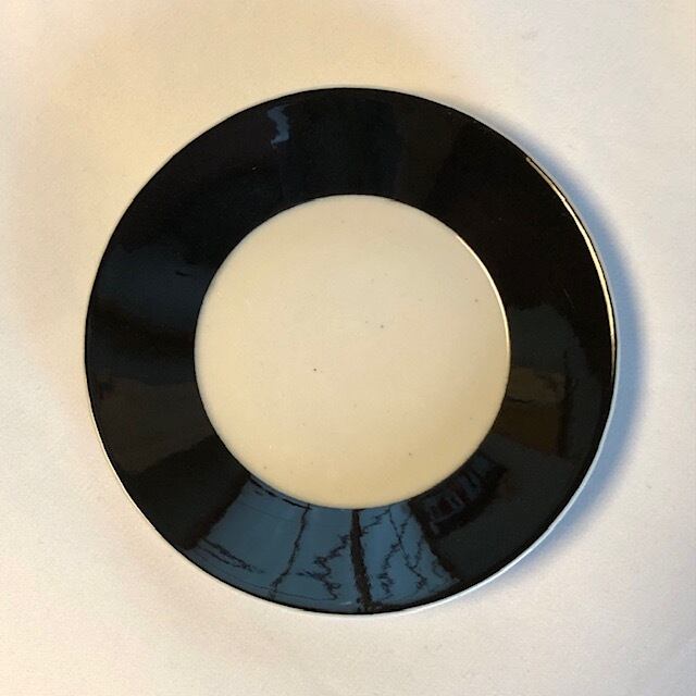 ベースは白でリム部の表面のみがカップと同じブラックデコレートされています。このツートンモノトーンが美しいのです。カトラリー跡と言える細かな擦れや細キズなど多少見られるものの、薄っすら感じる程度で比較的綺麗な状態と言えます。