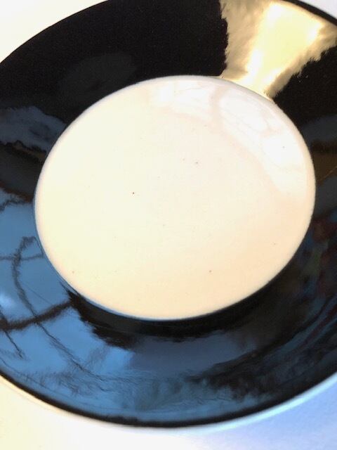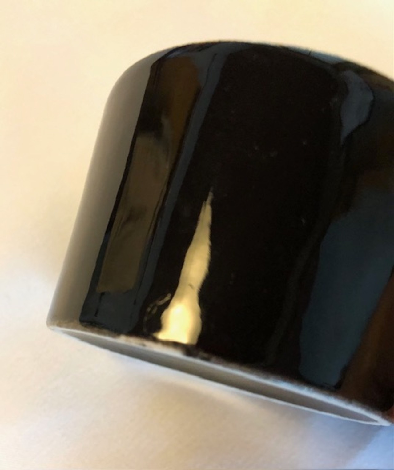 白黒のツートンで、エッジ部の切り返し部のエイジングの様な表情が大変美しく、堅い雰囲気が個性的なカッコイイ器だと感じています。細かな擦れや微細なキズなど多少感じる箇所はあるものの、いずれも目立つ跡ではなく、概ね良好な状態と言えます。※持ち手に向かってちょっと右側に製作ゆらぎスジの様な跡、側面下部(裏面との切り返し部)の釉薬ムラのような跡(画像4)は製作上仕方ないような感じに見られる状態です。