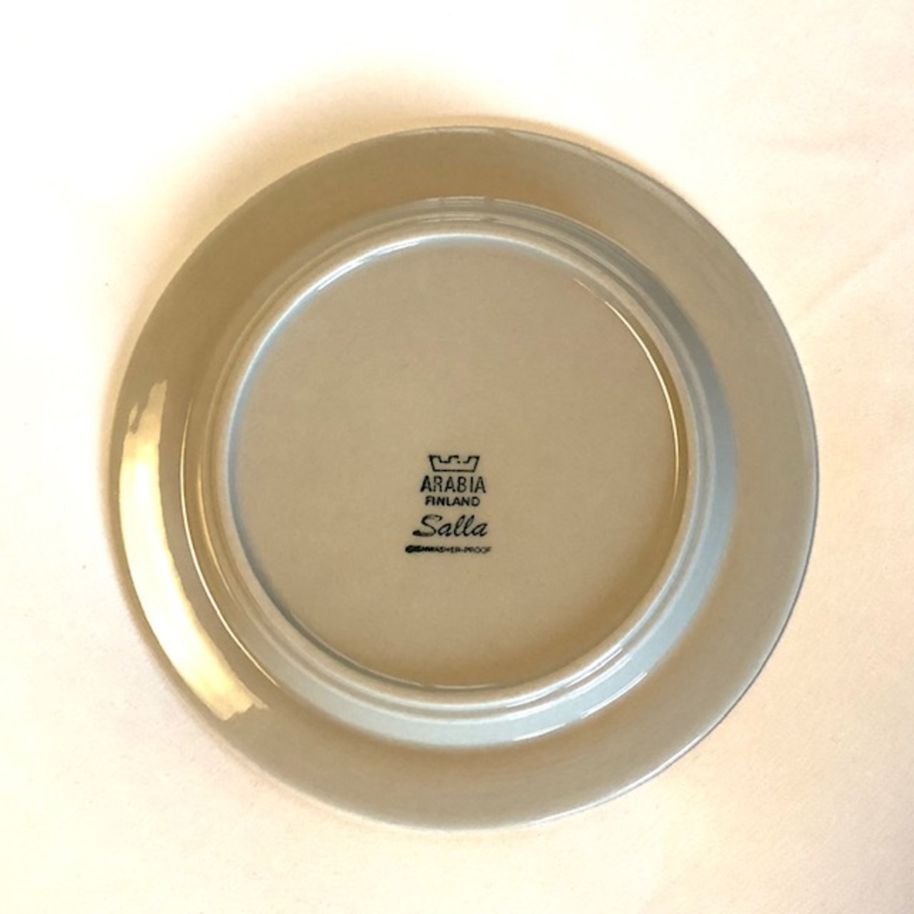 使用感と言える細かな擦れや細キズなど少し感じる箇所はあるものの概ね綺麗な状態と言えます。ARABIA Salla 旧ロゴのバックスタンプが残されており、食洗機可とされています。