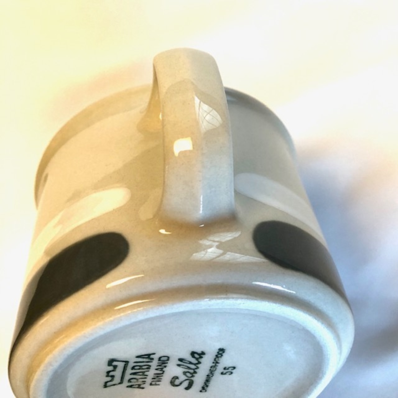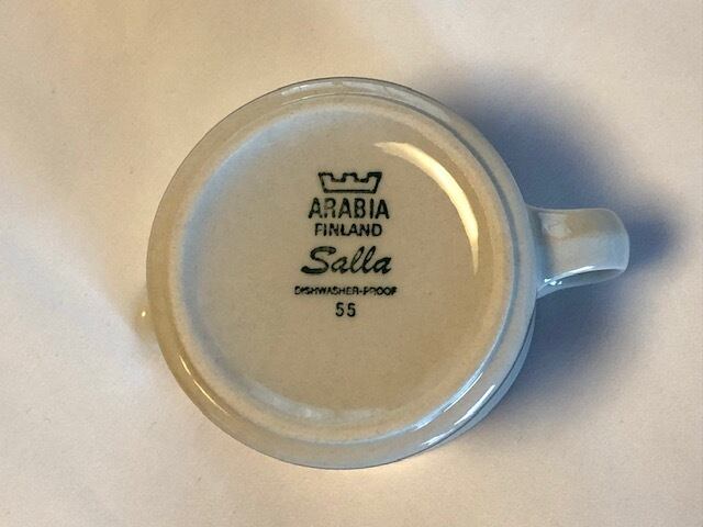 細かな擦れ、座の擦れやくすみなど見られますが、いずれも目立つ跡ではなく、概ね綺麗な状態と言えます。ARABIA Salla 旧ロゴバックスタンプが残されており、食洗機可とされています。