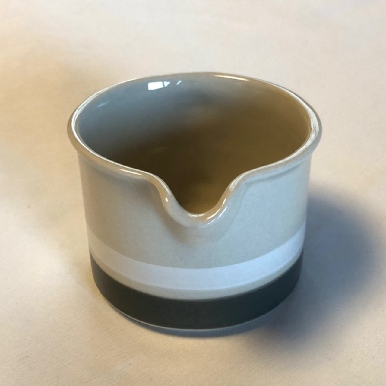 ハンドペイントらしい温もりを感じるラインデザインの魅力をまとったクリーマーををティータイムのお供にいかがですか。時にはソースや調味料などを入れテーブルに添えてあげる形もお勧めです。