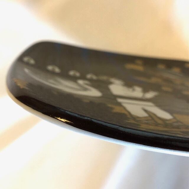 製作跡と言える釉薬ムラくすみのような跡は見られるものの、綺麗な状態です。フィンランド語・スウェーデン語・英語で絵柄の説明が記載され、壁掛け用の穴と金具が用意されています。