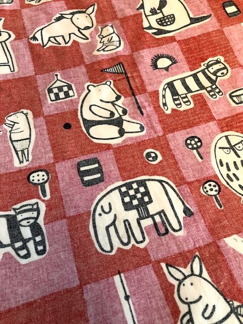 marimekko "NALLE"(赤)vintage TEXTILE 端切A