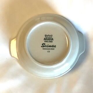 細かな擦れや微細キズ、座の擦れやくすみなど薄っすら少し見られますが、概ね綺麗な状態と言えます。ARABIA FINLAND Saimaa バックスタンプ が記されており、食洗機可とされています。