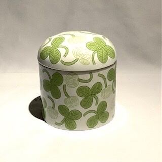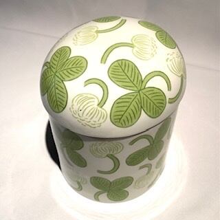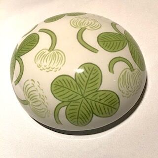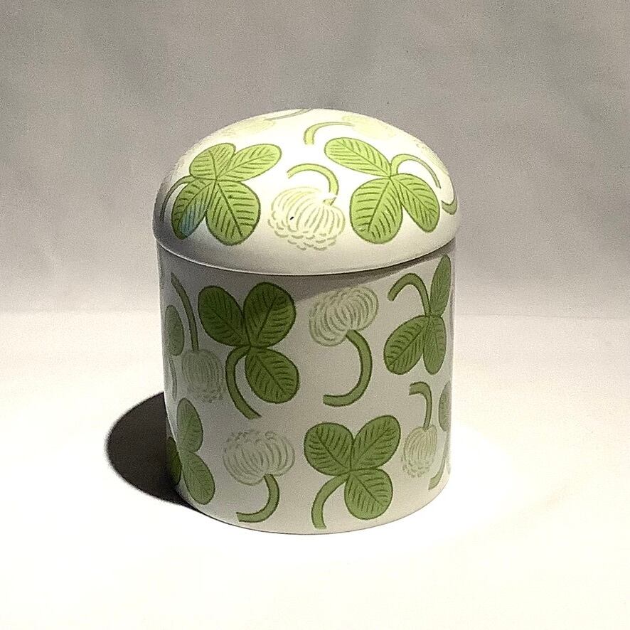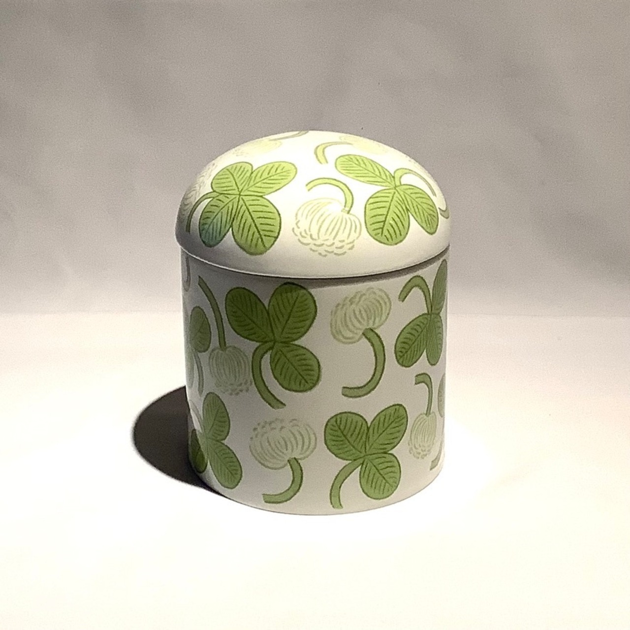 優しい感じの爽やかな色味のクローバー “Apila” は幸せを運んできてくれそうです。当時の雰囲気でお楽しみ下さい。蓋が付いているので、ビスケットなどの小さなお菓子を入れたり、お砂糖やお塩などを入れたり、何か小物を入れても可愛らしく活躍してくれそうです。なかなか出てこない一期一会を是非この機会にご検討下さい。