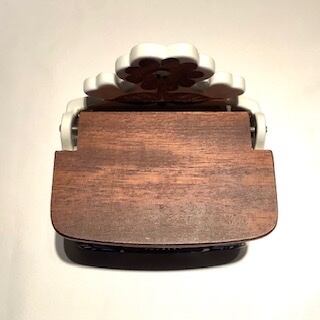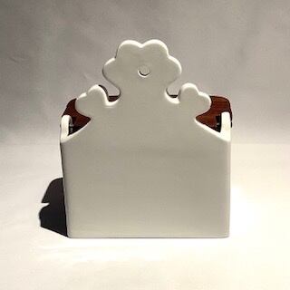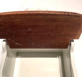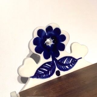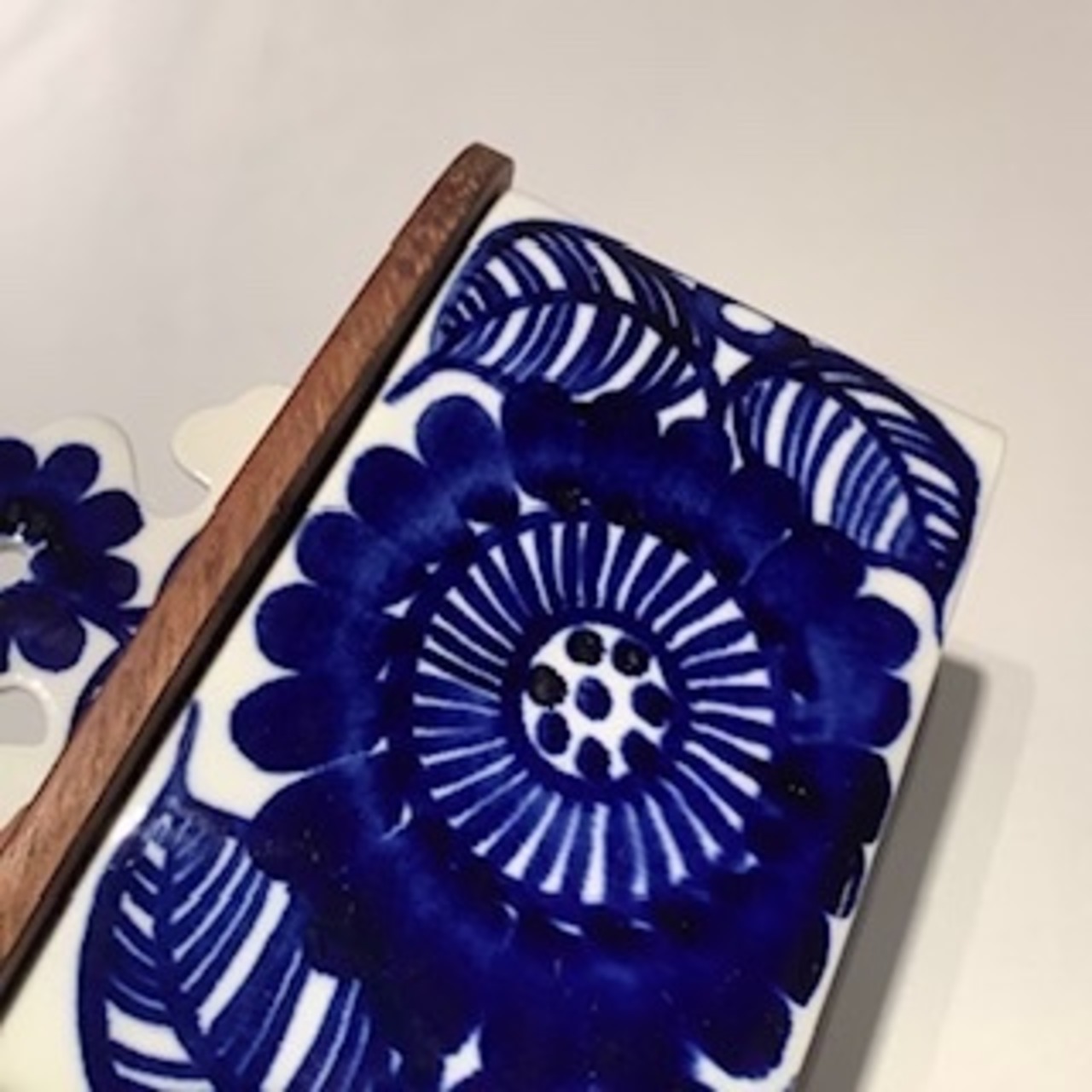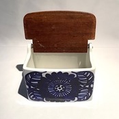 製作焼成時跡は少し感じる箇所はあるものの、細かな擦れなど薄っすら僅かに感じる程度で概ね良好な状態と言えます。※木製蓋の背面花はシルエットに縁取られ、花の中心に壁掛け時に使用する穴が設けてあり、邪魔しないデザインに見えます。