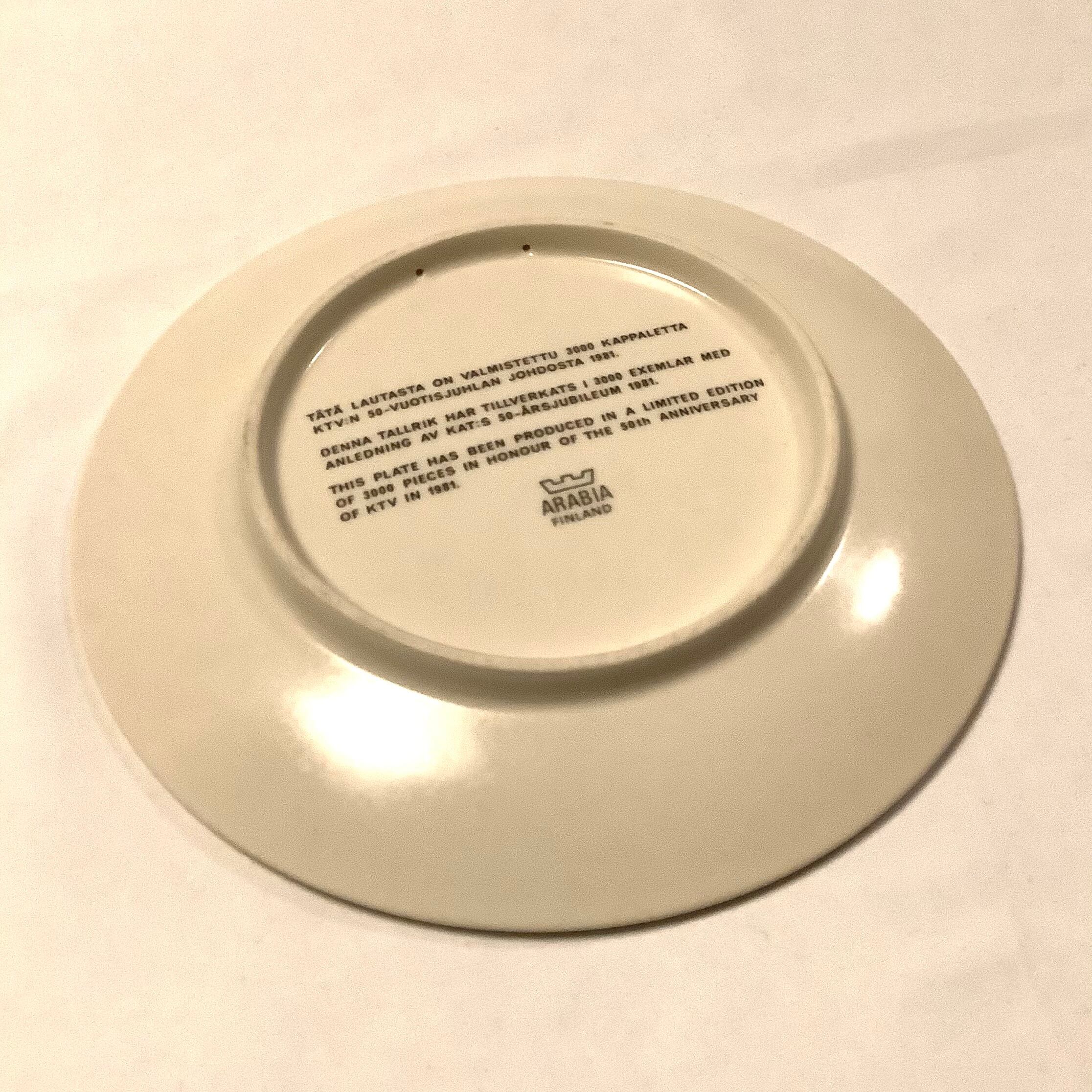 ARABIA フィンランドのKTV(労働組合連合)50周年記念プレート(20 cm)限定3000枚 Raija Uosikkinen(ライヤ・ウオシッキネン)デザイン