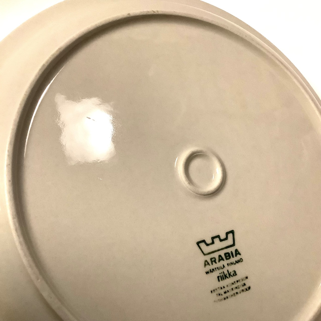 “riikka” は Anja Jaatinen Winqvist(アンヤ・ヤーティネン・ウィンクヴィスト)によって1970年代に手掛けられたデザインで、ステンシルによって施された花びら模様が独特な可愛らしさを放ち、心癒されるデザインです。出合える機会はそう多くはなく、人気で貴重な器の一つと言えるでしょう。