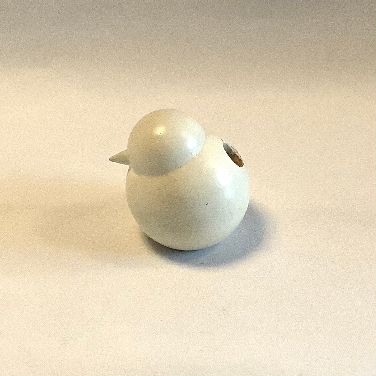 鳥さんの背中には穴が設けられ、楊枝を背負うように立てることができます。その他、軽くて然程長くなければ鉛筆やペン立ての様な使い方もできる可能性があり、真っ白でコロンとした小鳥さんは愛嬌たっぷりで大変可愛らしい姿をしています。