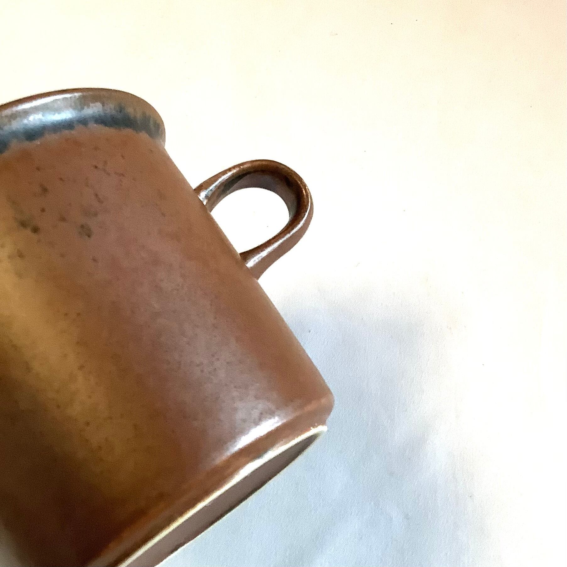 独特の釉薬によって、秋の紅葉のごとく、決して同じものはないと言われるグラデ-ションの色合いが何とも言えない大変魅力的な作品です。シンプルでいて独特なフォルムが飽きの来ない永く愛される理由なのだと思います。シンプルで実用性の高い食器と言えますので、朝食などでコーヒーや紅茶などをたっぷり目に楽しみたい方にもお勧めです。きっと、あなただけのルスカになってくれるはずです。