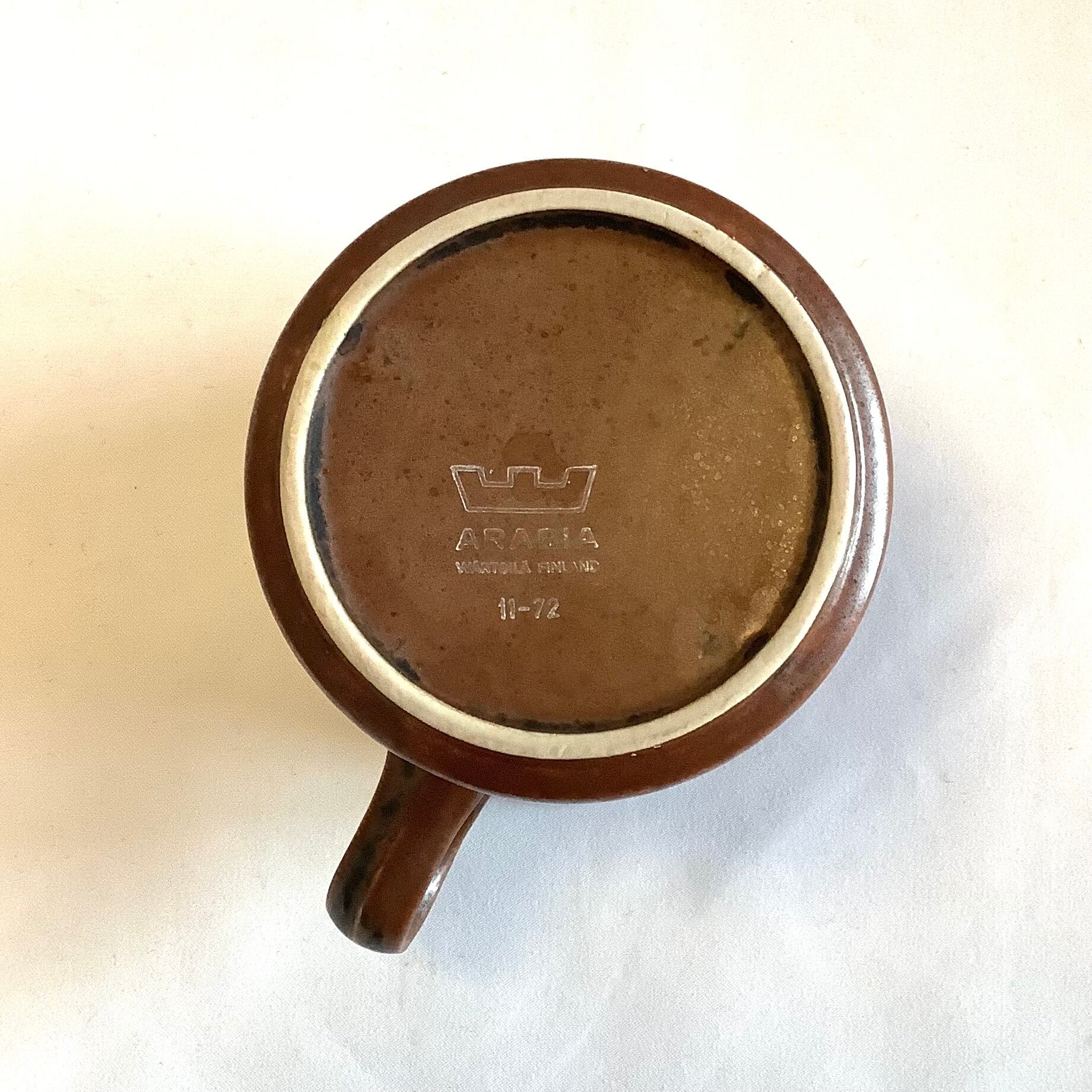 細かな擦れやキズなど殆ど感じられず(紛れている可能性はありますが)、白い座上のくすみなどは少し見られるものの、概ね良好な状態と言えます。ARABIA旧ロゴのバックスタンプが残されています。