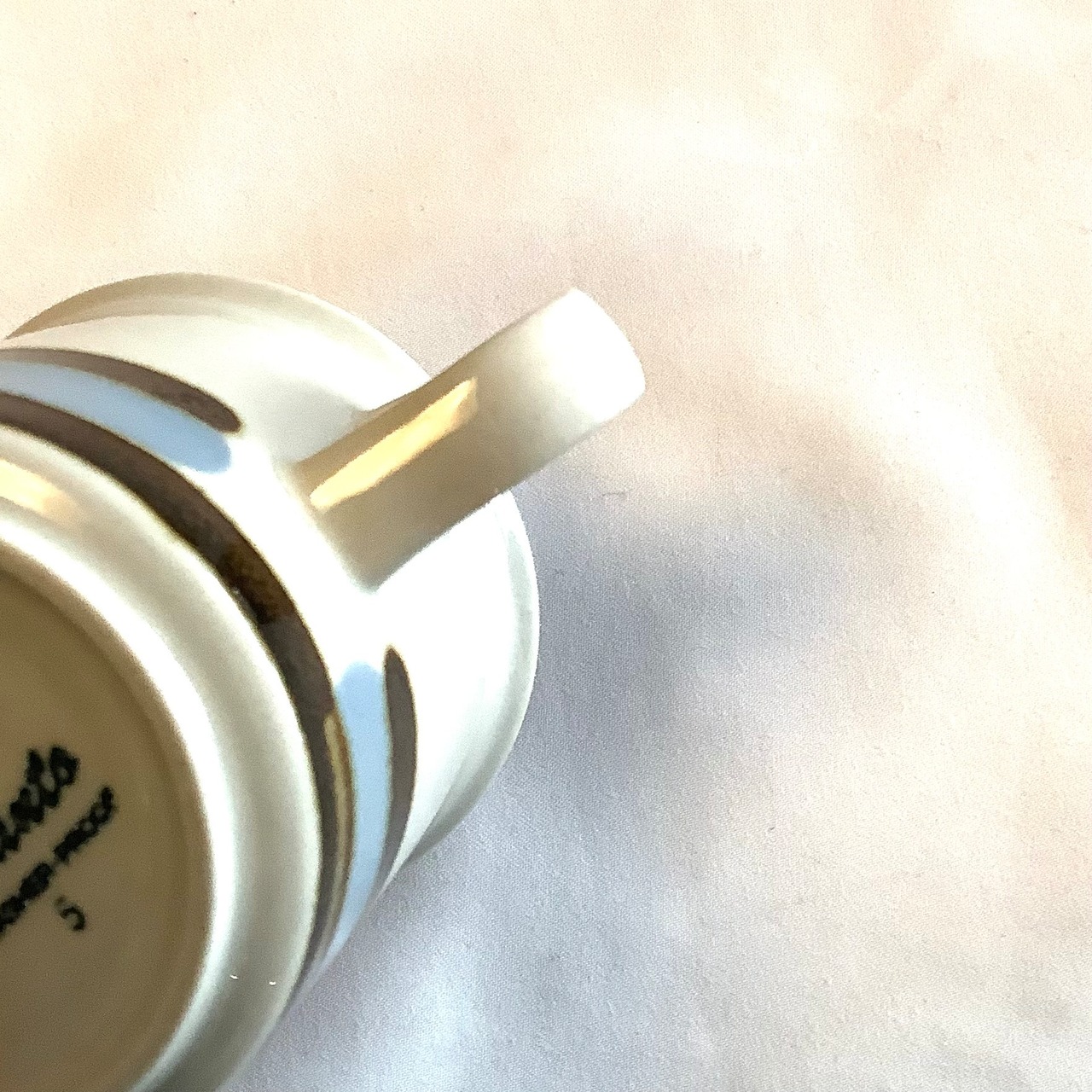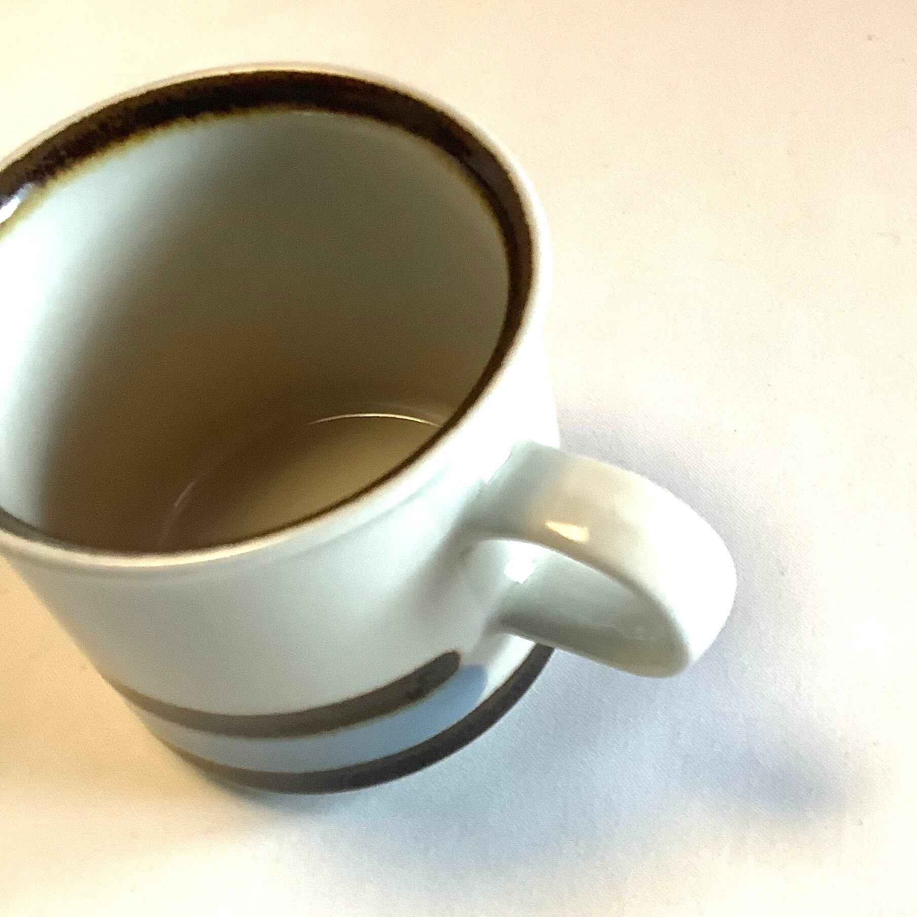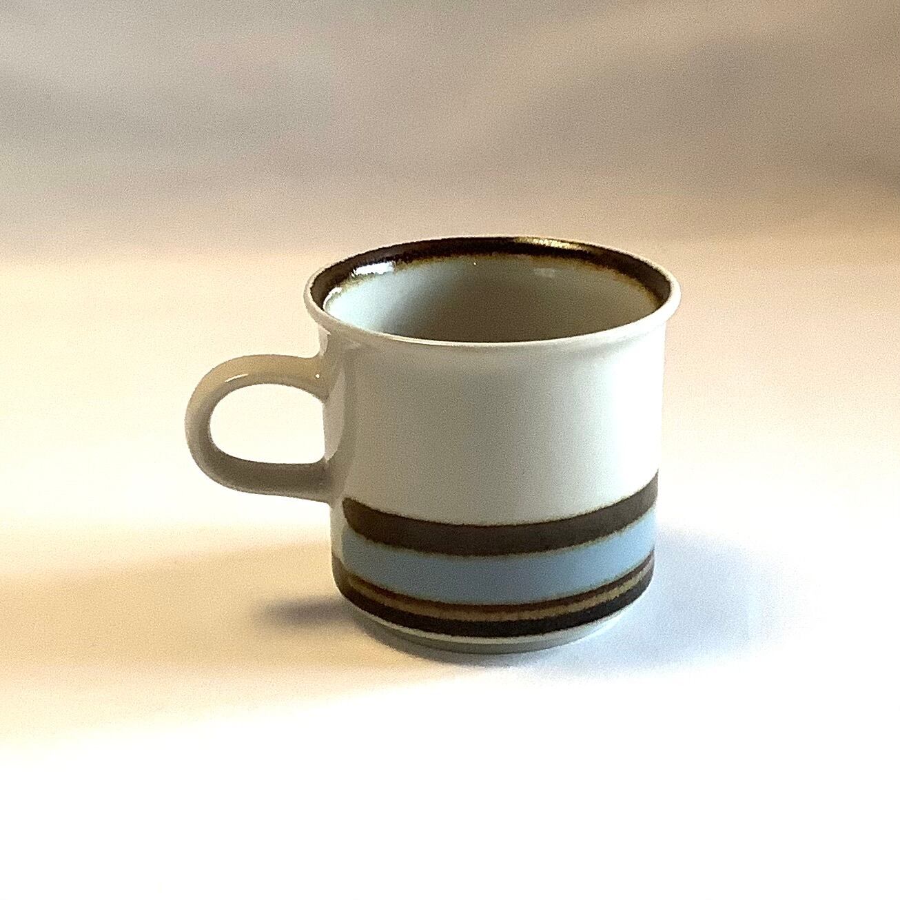 “Suvanto” は 1970年代頃にデザインされたシリーズ作品になります。フィンランド語で「静かな水の流れ」というような意味を持っており、フィンランド北部の湖の名前でもあるのです。茶色と水色ラインの組み合わせは、その名の通り、水色が湖、茶色が岸辺をシンプルに表現されています。ラインとの境いの絶妙な滲みが味わい深く、シンプルながらに表情の豊かさが感じられ、大人の雰囲気で楽しめる器と言えます。アラビアの主力デザイナーであったウラ・プロコッペが手掛けたフォルムをベースに、没後デコレーションは ARABIA デザインと言われています。