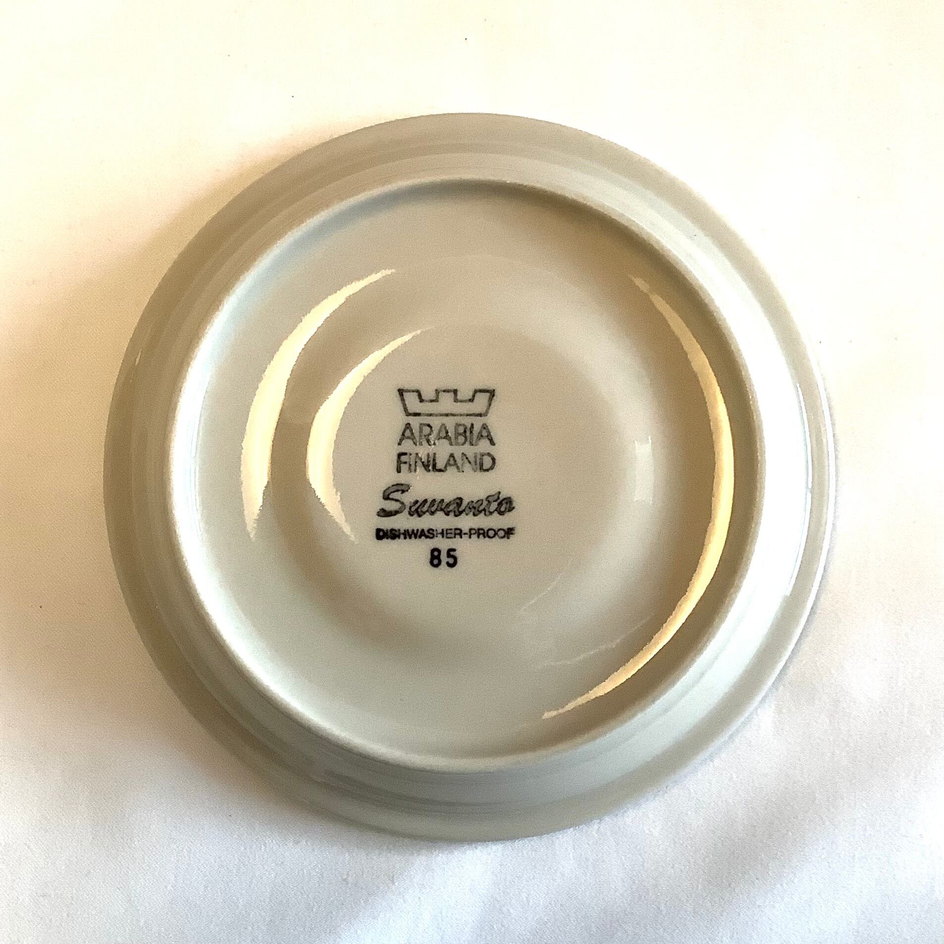高台内に細かな擦れなどの使用感が見られ比較的綺麗な状態と言えます。ARABIA FINLAND Suvanto などのバックスタンプが記され、食洗機可とされています。