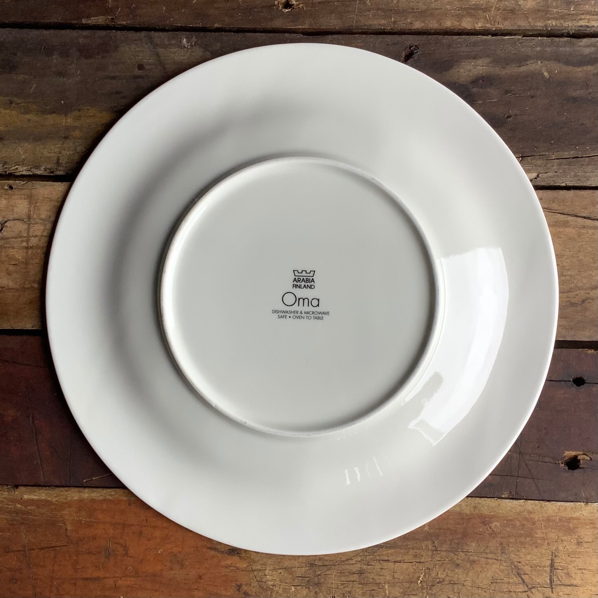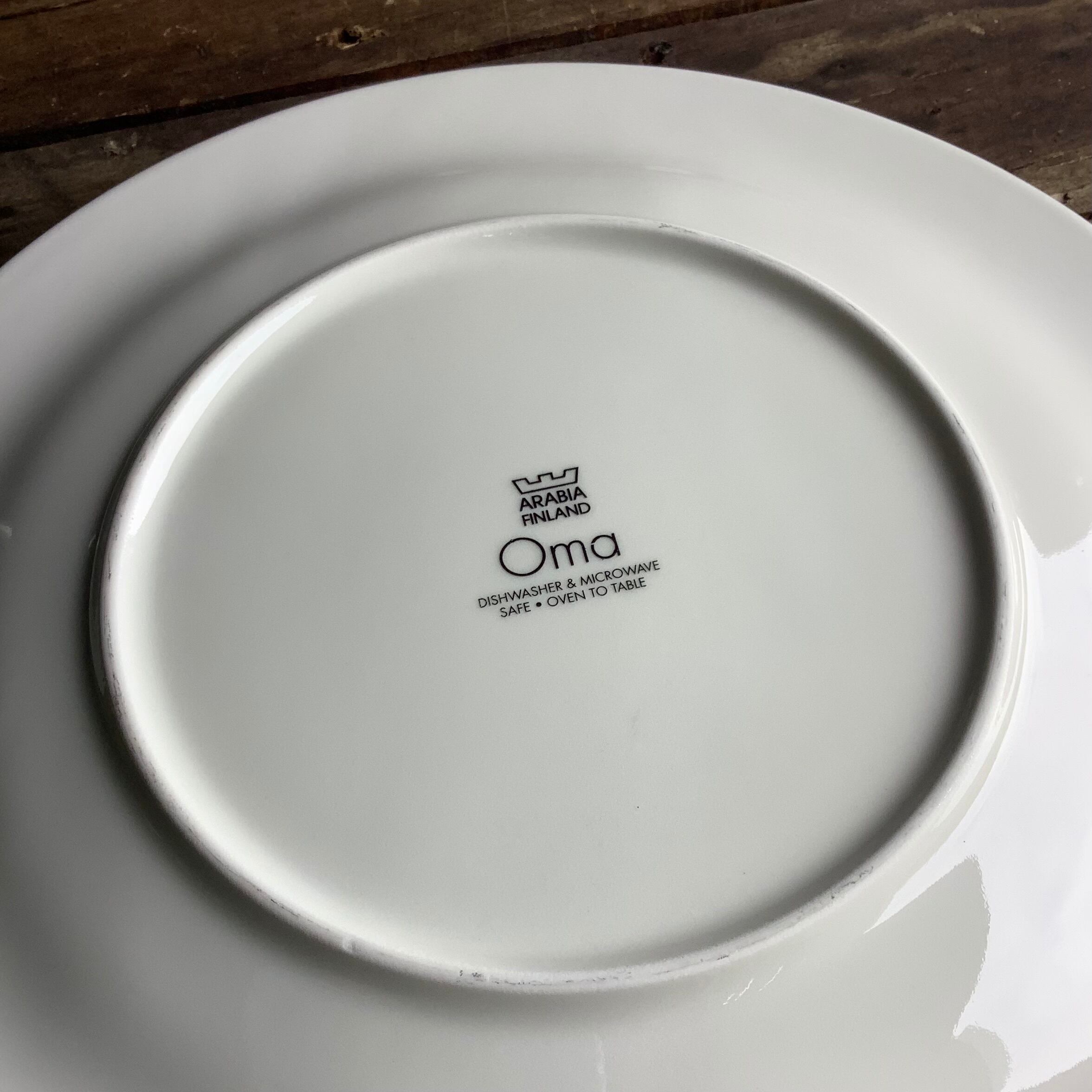 "Oma" は フィンランド語で直訳すると「あなたの(プレート)」という意味となり、 Harri Koskinen によって手掛けられたシリーズで、バックスタンプから判断するに 1981年以降のデザイン・生産と判断致します。どこから見ても滑らかで優しいシンプルなフォルムと真っ白の色味が美しい極みのような印象を放っています。
