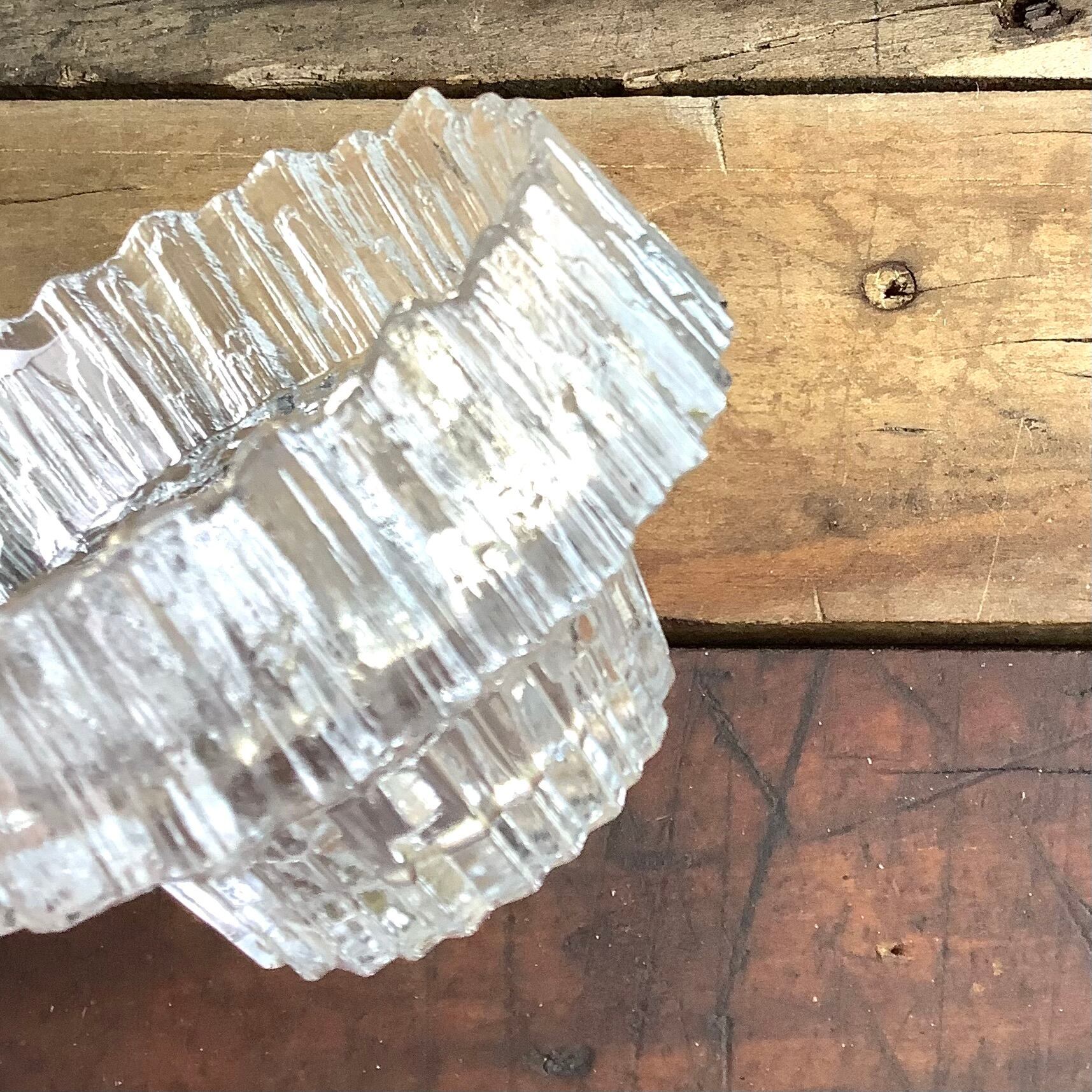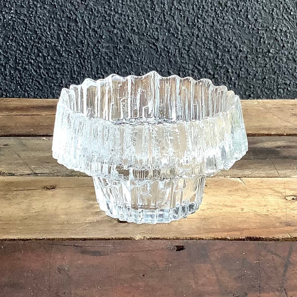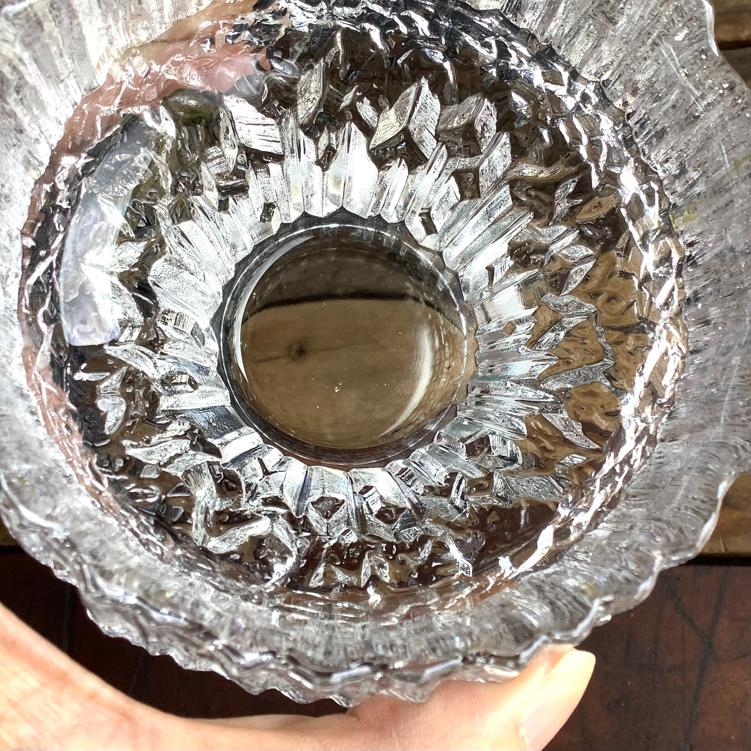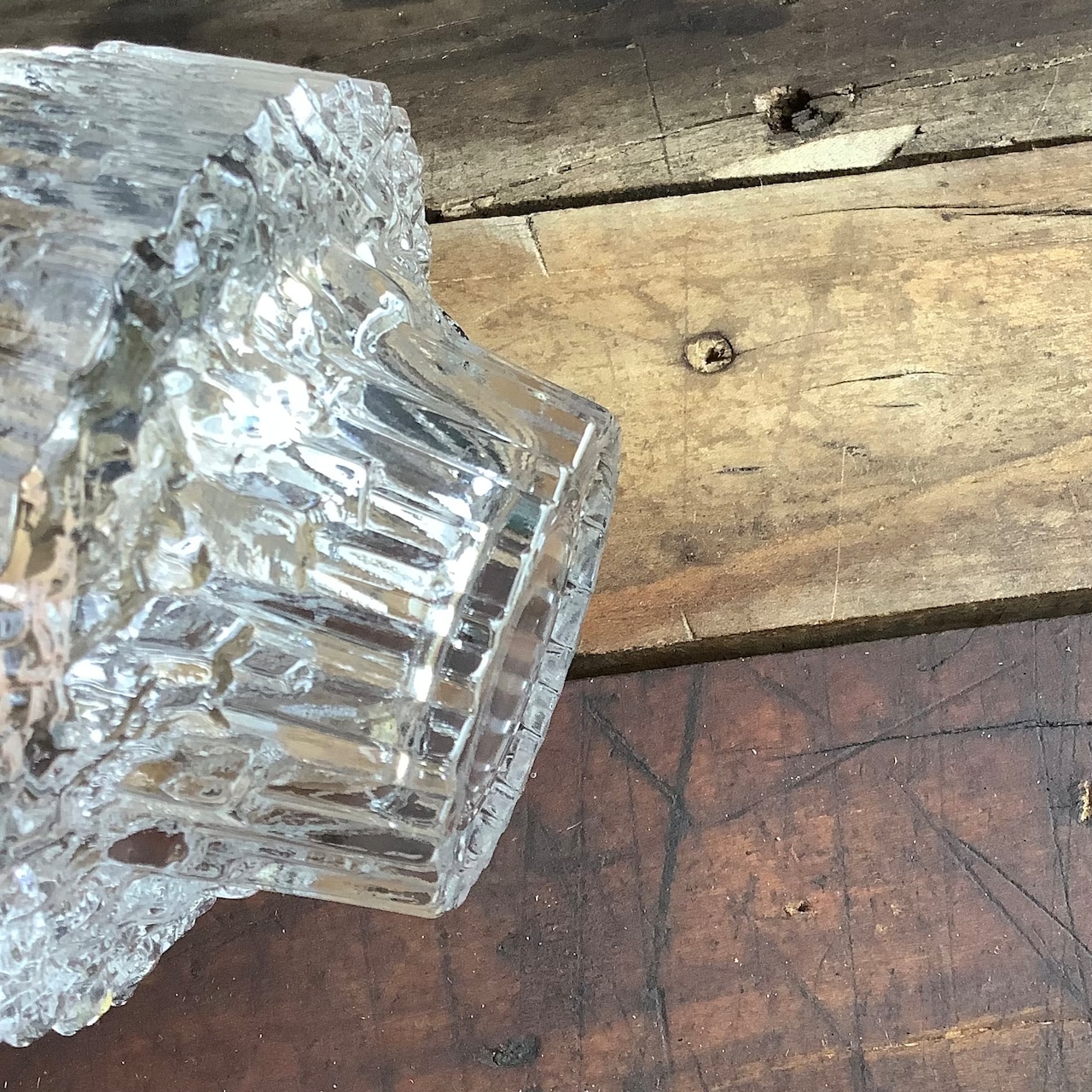 美しい表情を見せる自然からインスピレーションを受け作品が生まれていると言っても過言ではない Tapio Wirkkala(タピオ・ウィルッカラ)ステラリアのヴィンテージキャンドルホルダーは 1970 - 85年にかけて製造されていました。自然な気候が生み出した氷の霜柱の様なガラス肌をしており、どこから見ても楽しませてくれる大胆で美しい作品です。