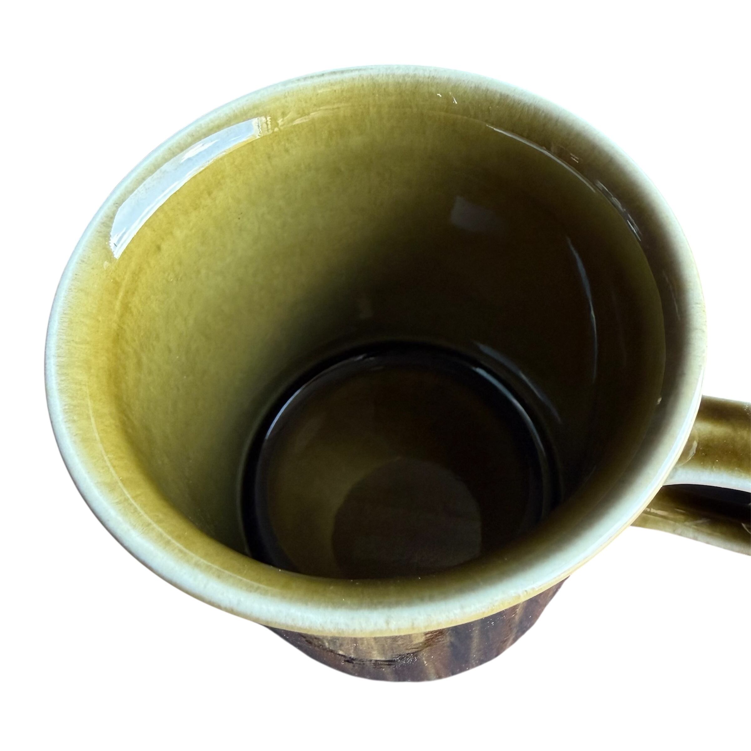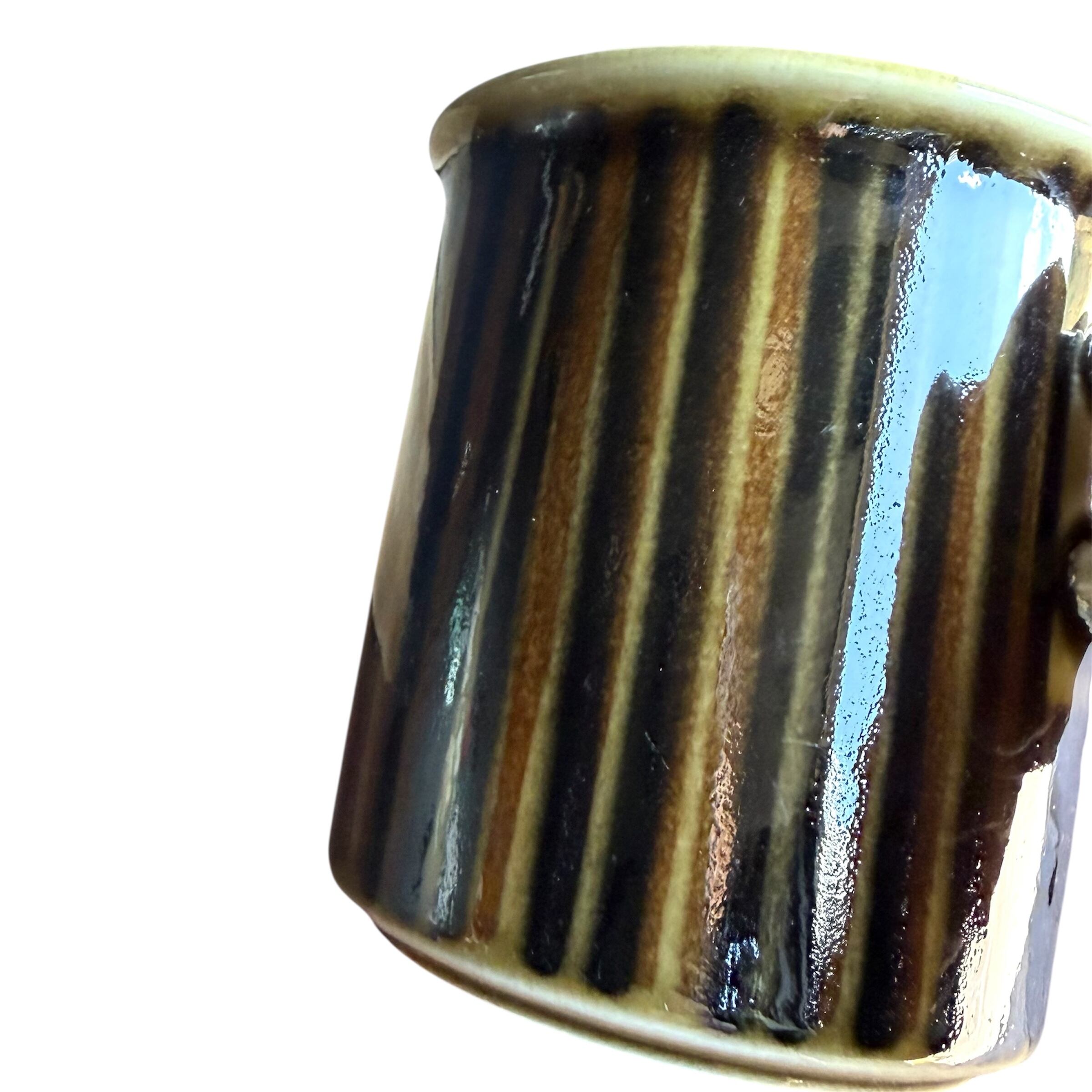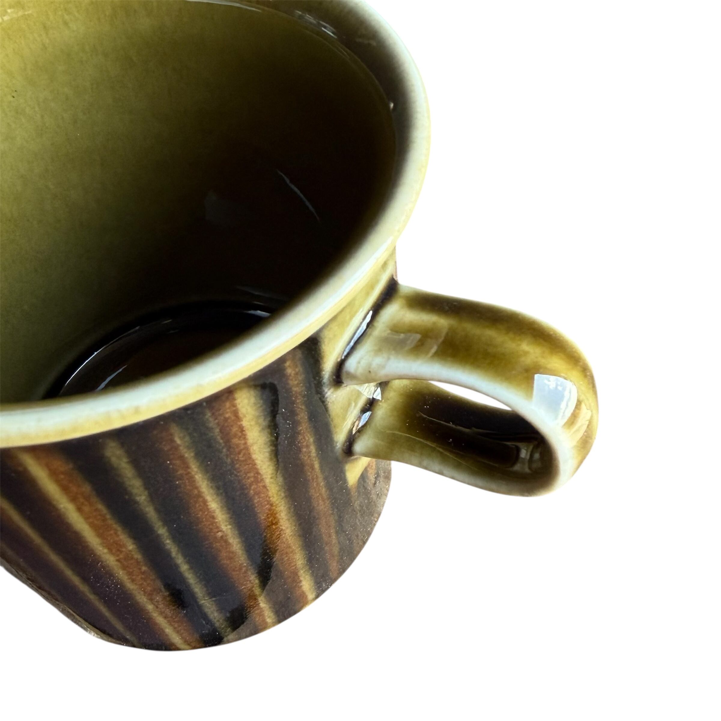 マグカップ級のボディーに比べ、人差し指を引っ掛け持つような小さめの持ち手もチャーミング。持ち手上面に水跡輪ジミのような跡(画像10)はありますが、その他擦れなど薄っすら少し感じる程度で比較的綺麗な状態と言えます。