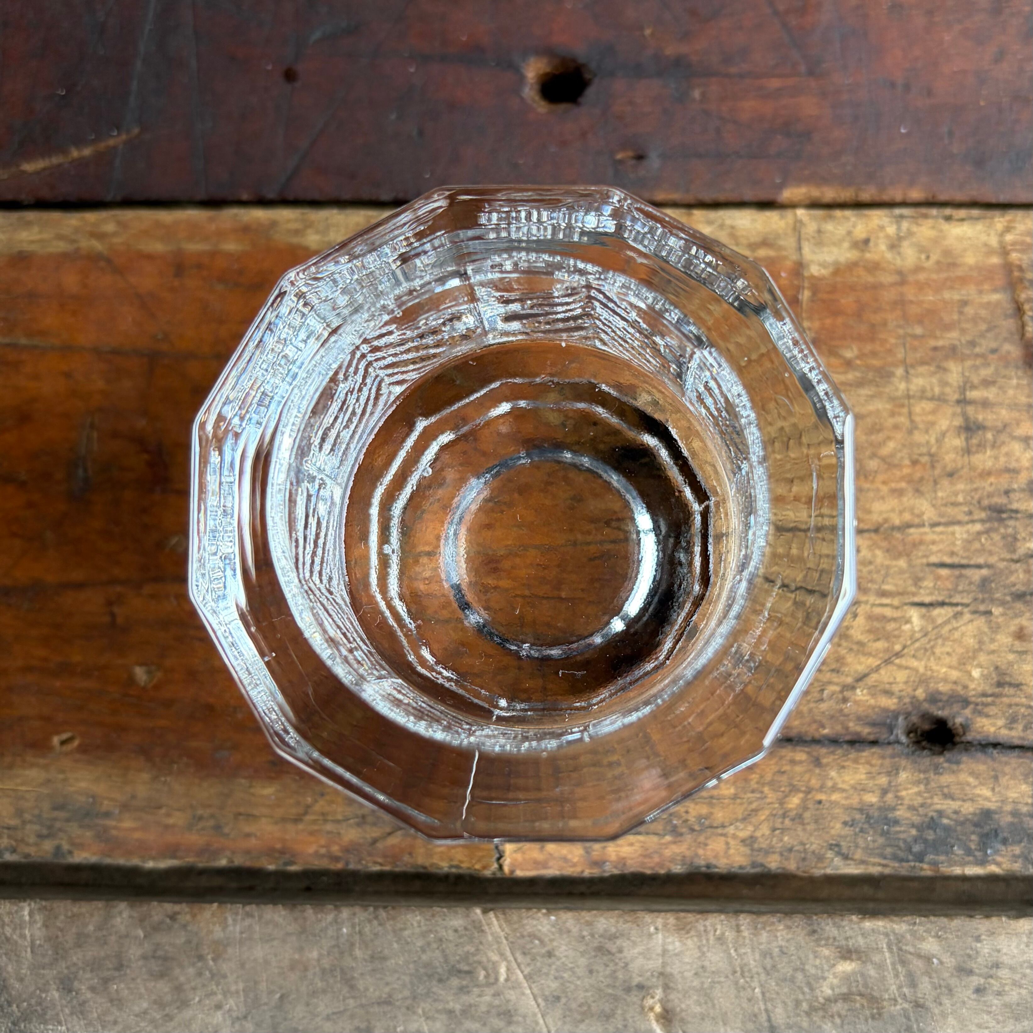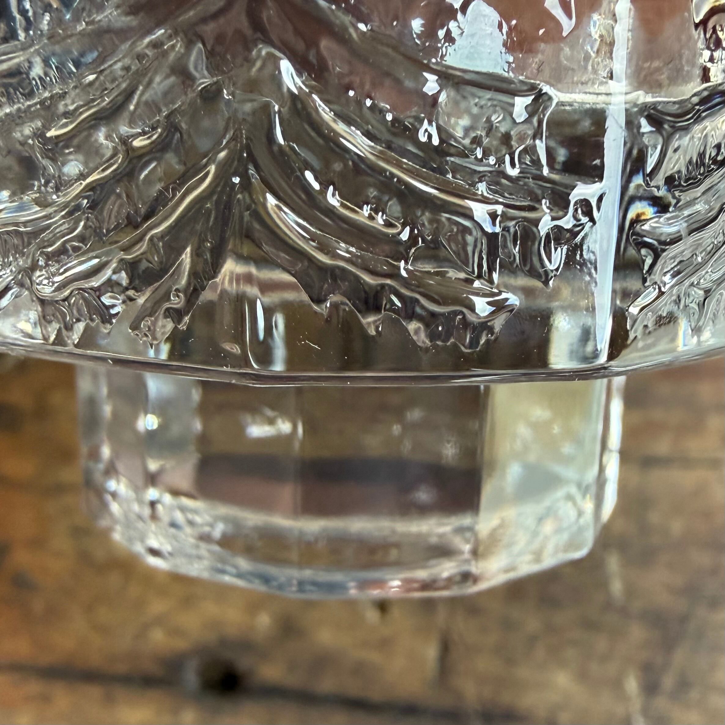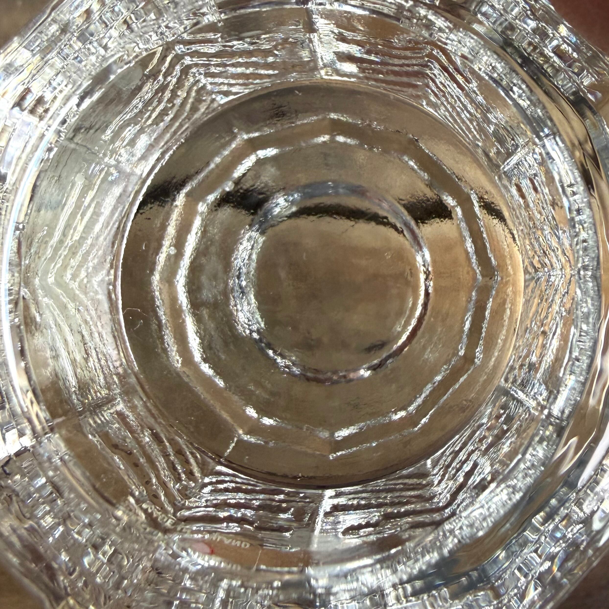 "KUUSI" は デザイナーの Jorma Vennola(ヨルマ・ヴェンノラ)によって1980年代に手掛けられたシリーズ作品で、数字の「6」を意味しています。その名の通り上から見ると12角形のガラスのカッティングが美しく、側面のもみの木が二角にまたがるように6本彫り物の様に隆起させた表現が豊かな表情とフィンランドらしさを放っています。モミの木が6本だから KUUSI と名付けたかは判りませんが、シンプルなネーミングが心地良くもあるのです。