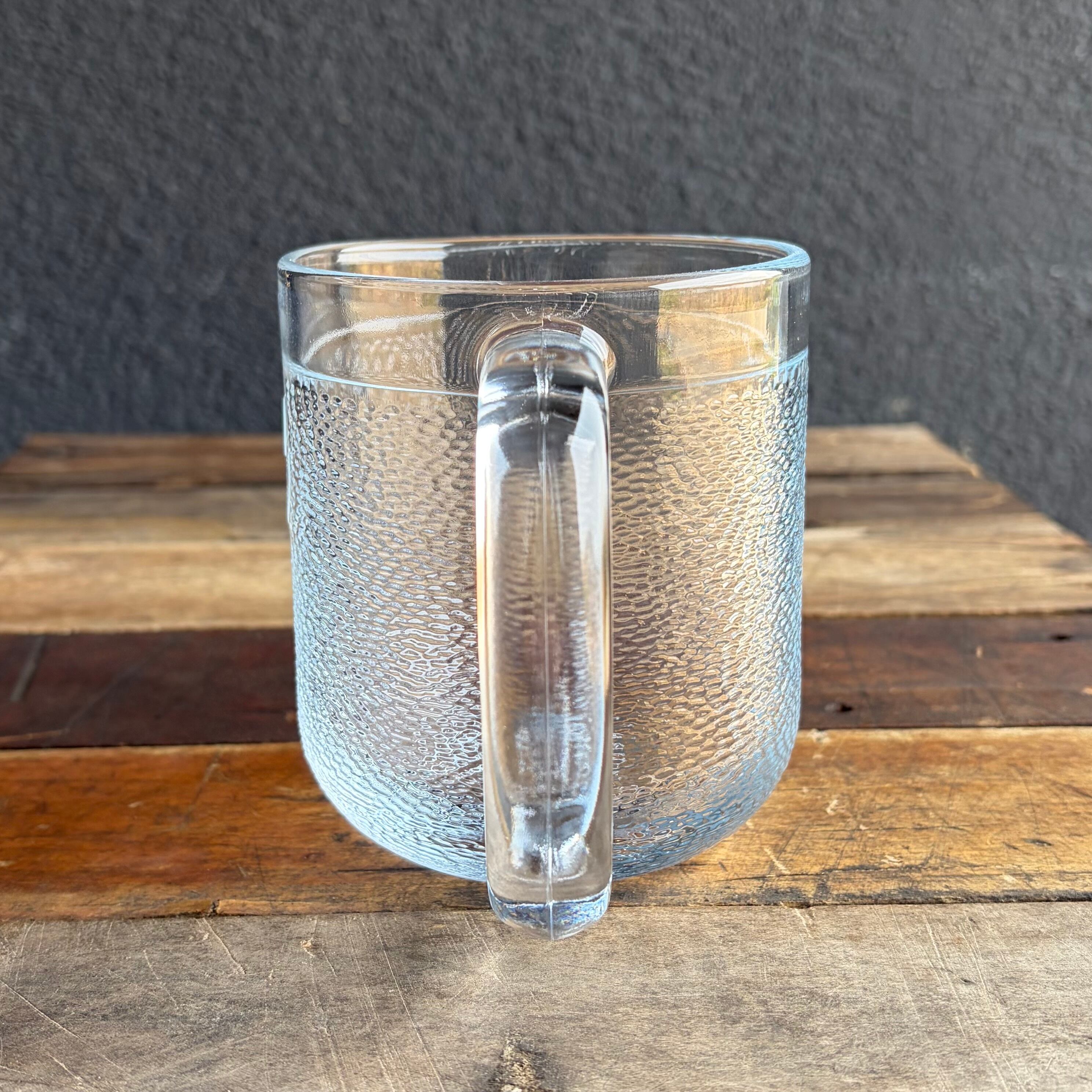 大きさは約 直径(口径)10 cm(持ち手含めた最大幅14.5 cm)× 高さ11.5 cm、容量はドーンと500 ml 程度入ります。(側面に50 cl としっかりと刻まれている上のラインまで )