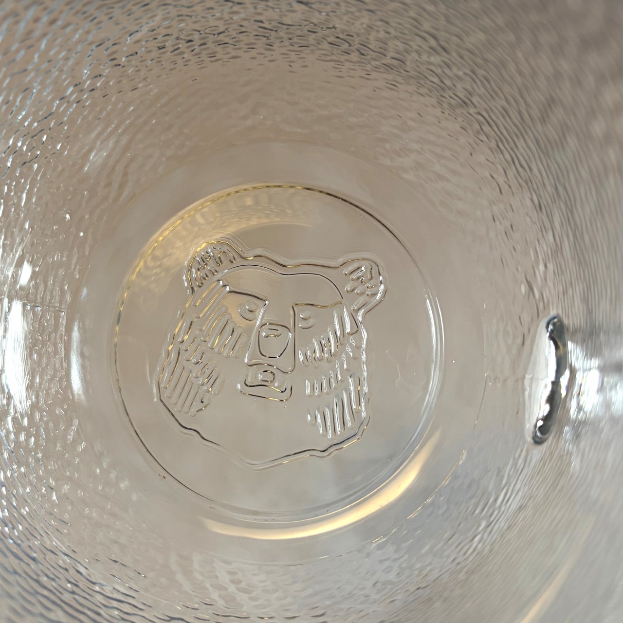 クマの顔は実際には裏面から刻まれており、ビールなどを飲み干すと強面のクマさんの顔があらわになります。製作ゆらぎなどは少し見られるものの、綺麗な状態と言えます。