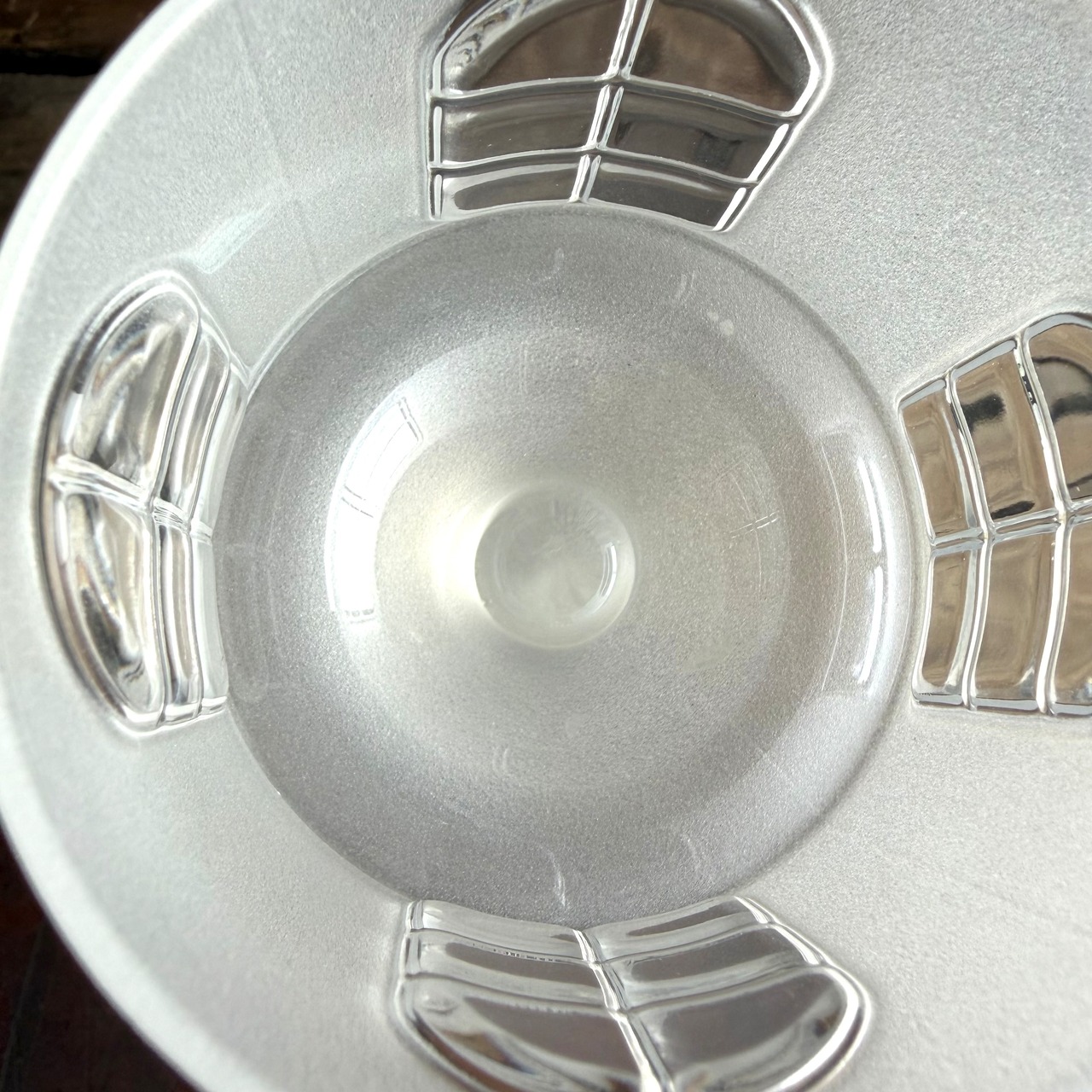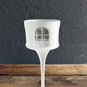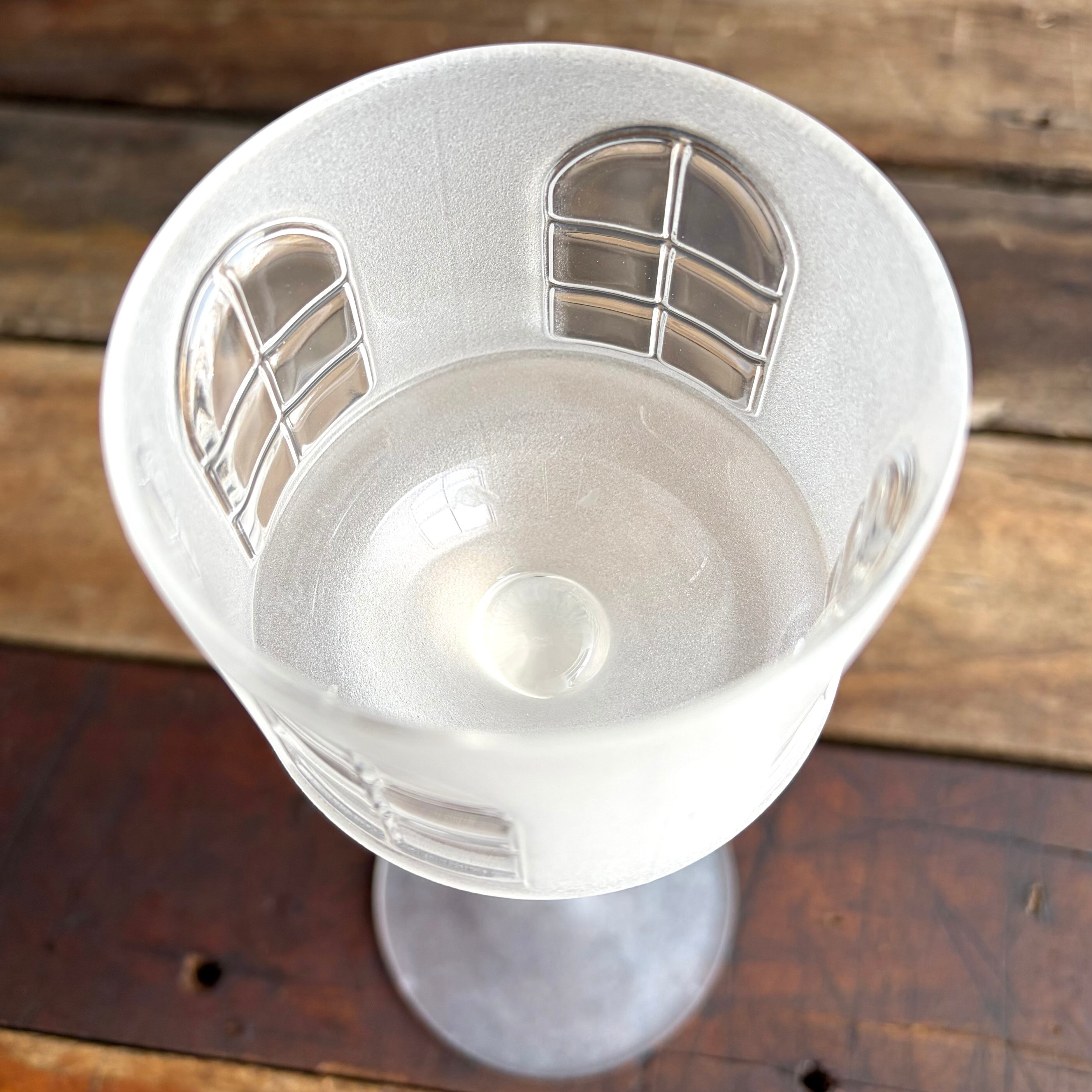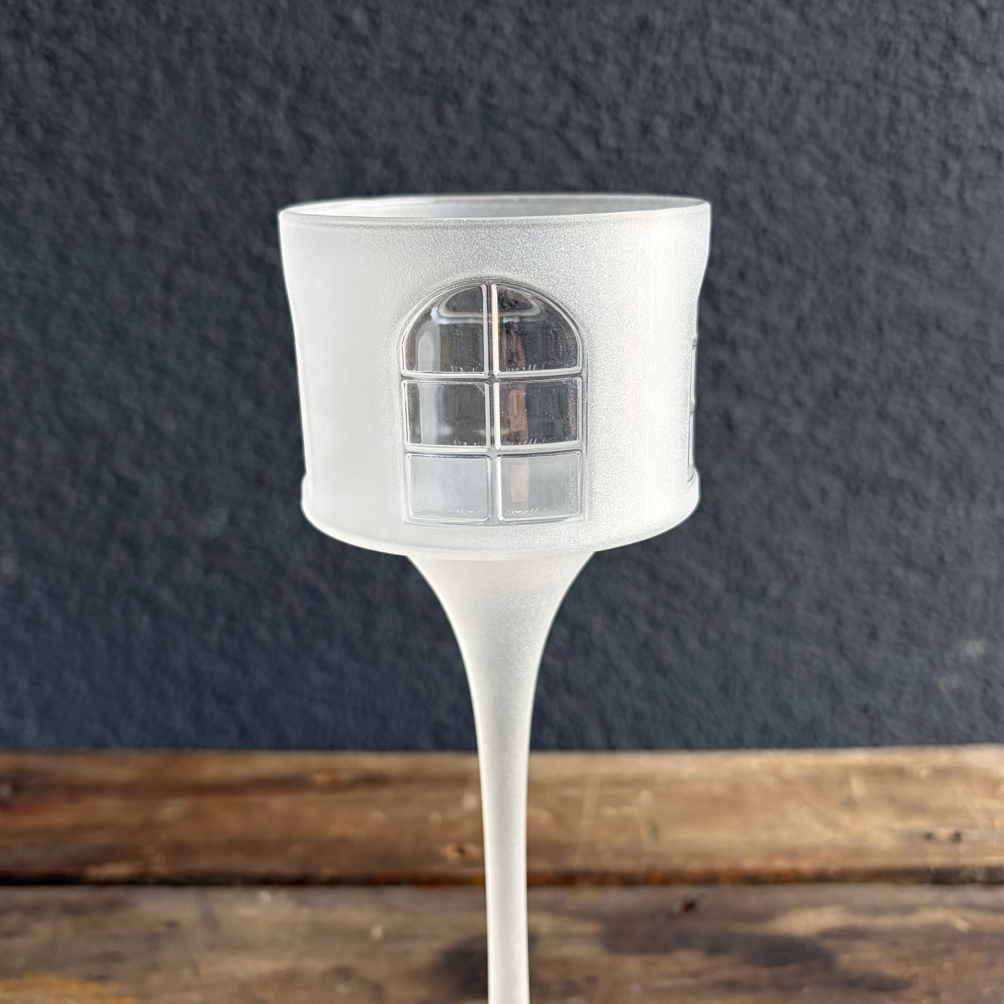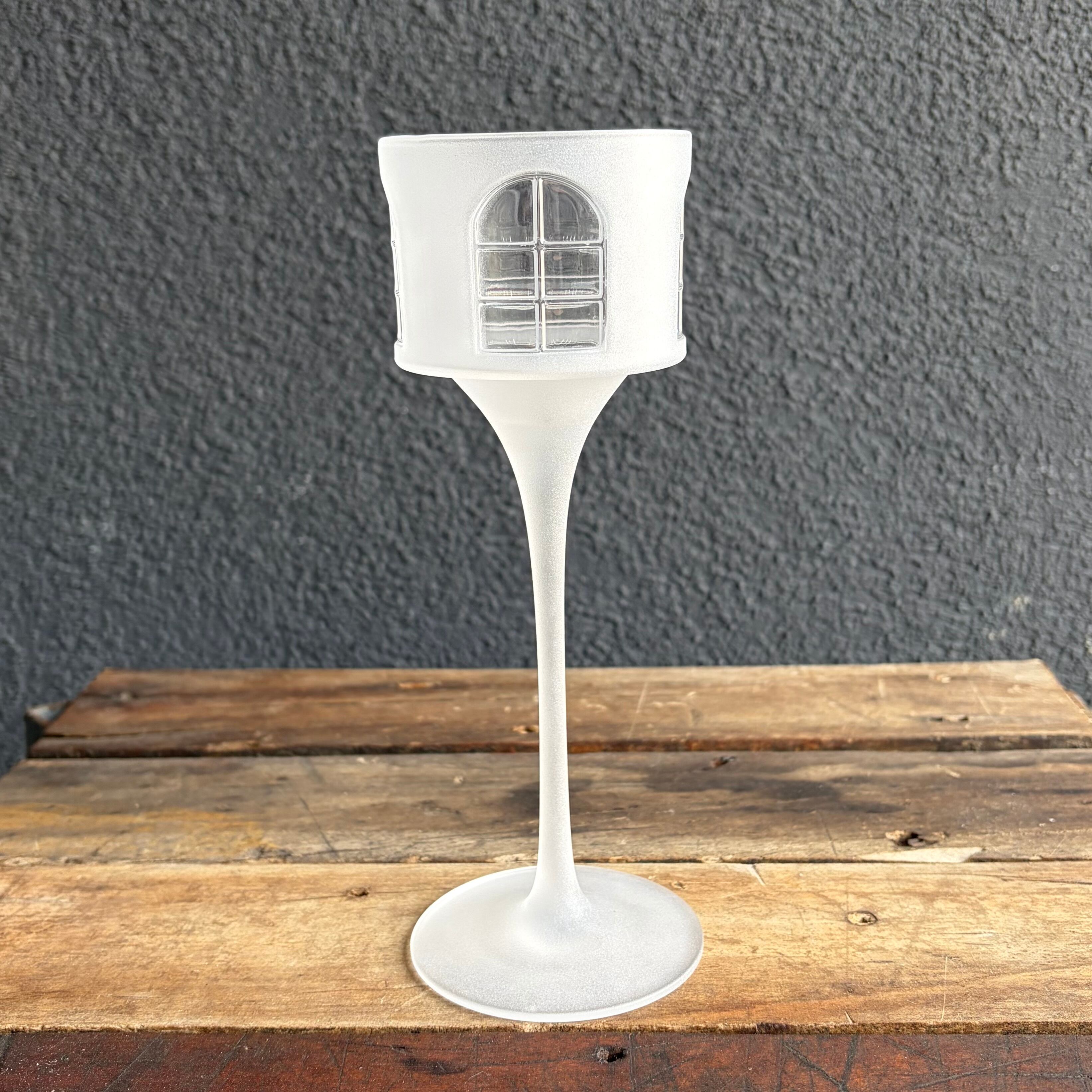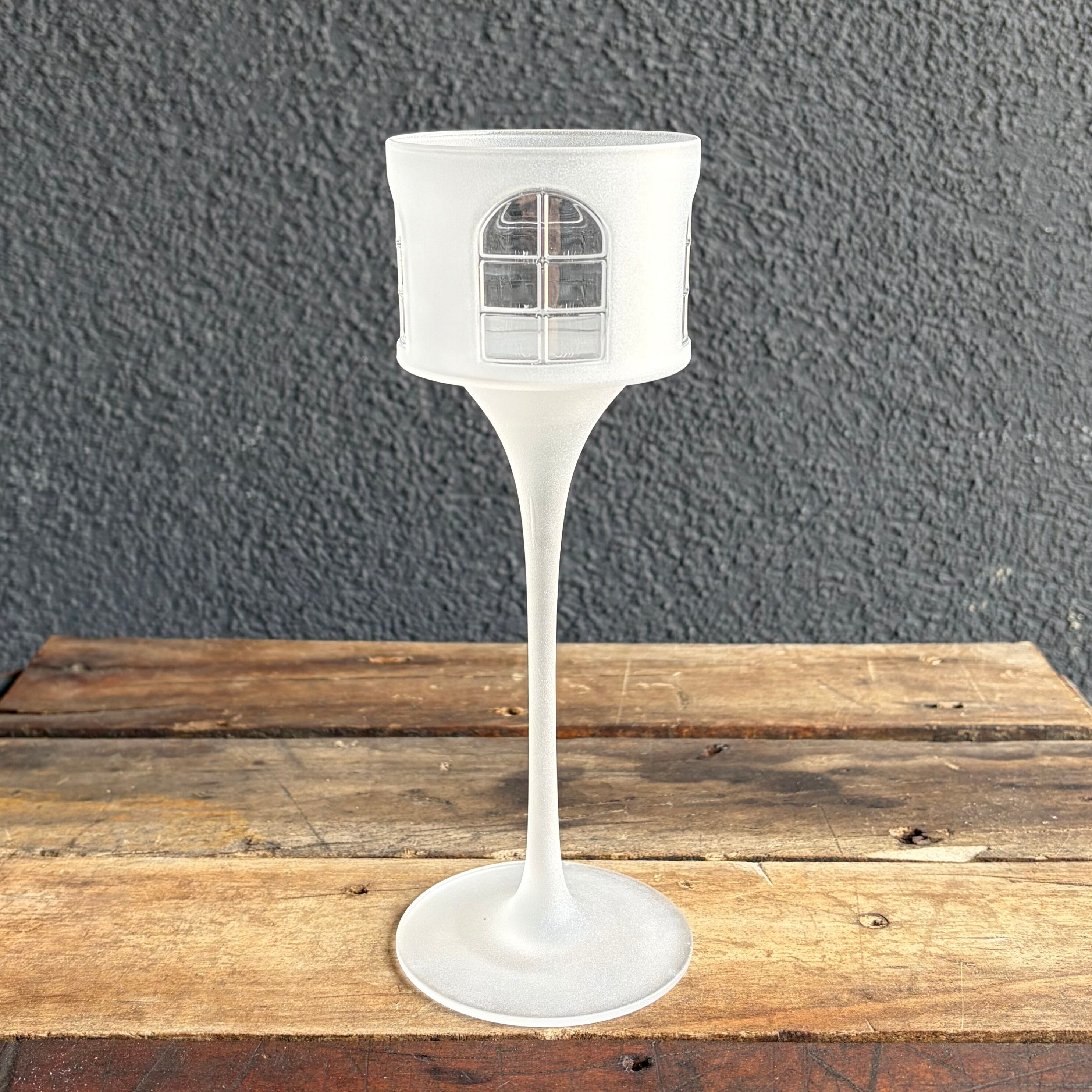フロストガラスをベースに側面に4つの窓(クリアガラス)が象られている脚付きのキャンドルホルダーです。