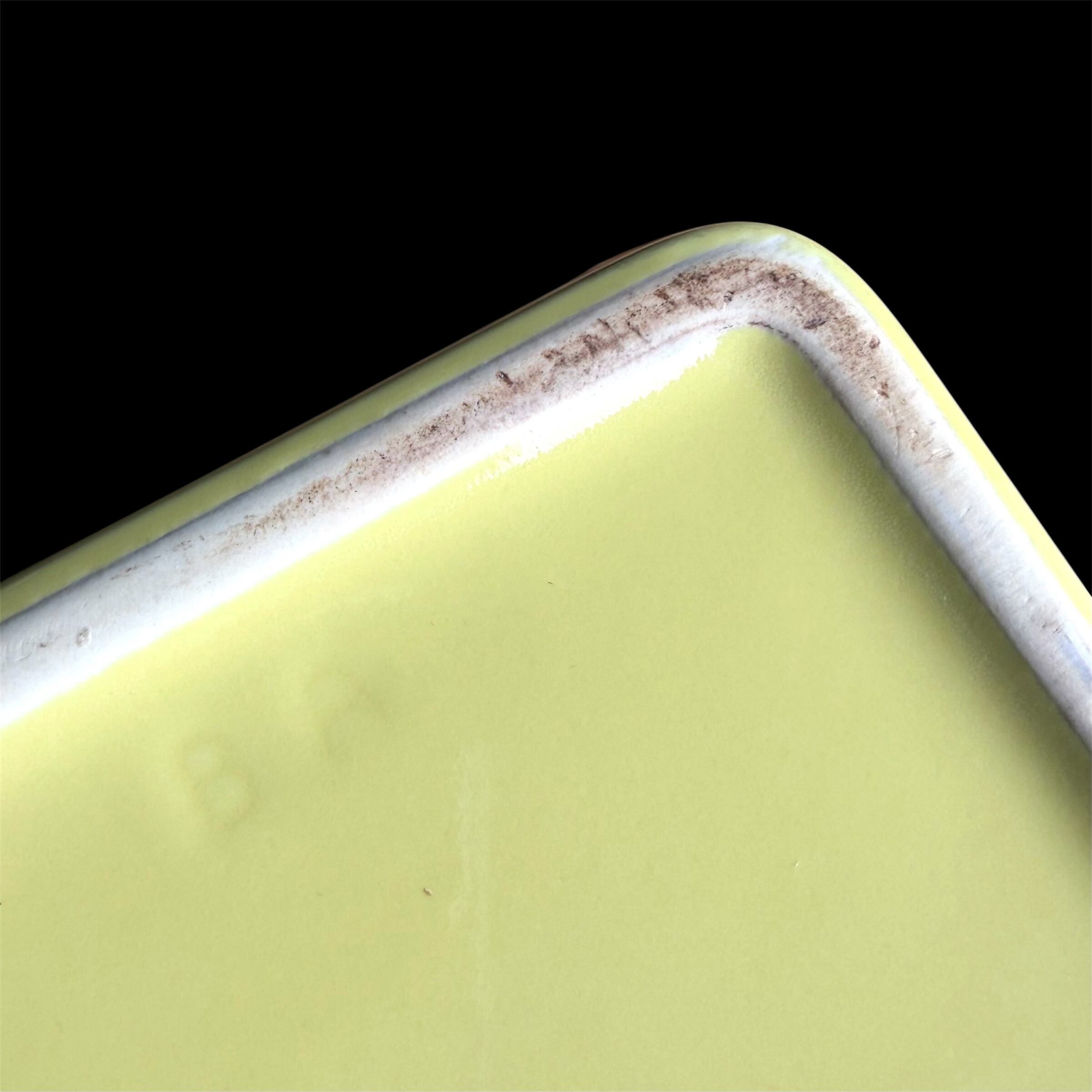現代のTEEMAのイエローより少しくすんだレモン色に近い気がいたします。どことなく落ち着きもあり、キルタらしい個性的な美しさをお楽しみ下さい。縁近くに釉薬が厚くなったムラなど見られる箇所はあるものの、微細な擦れやキズ、小さな汚れなど薄っすら感じる箇所がある程度で、目立つ擦れ、キズ、汚れなど見当たらず、概ね綺麗な状態と言えます。
