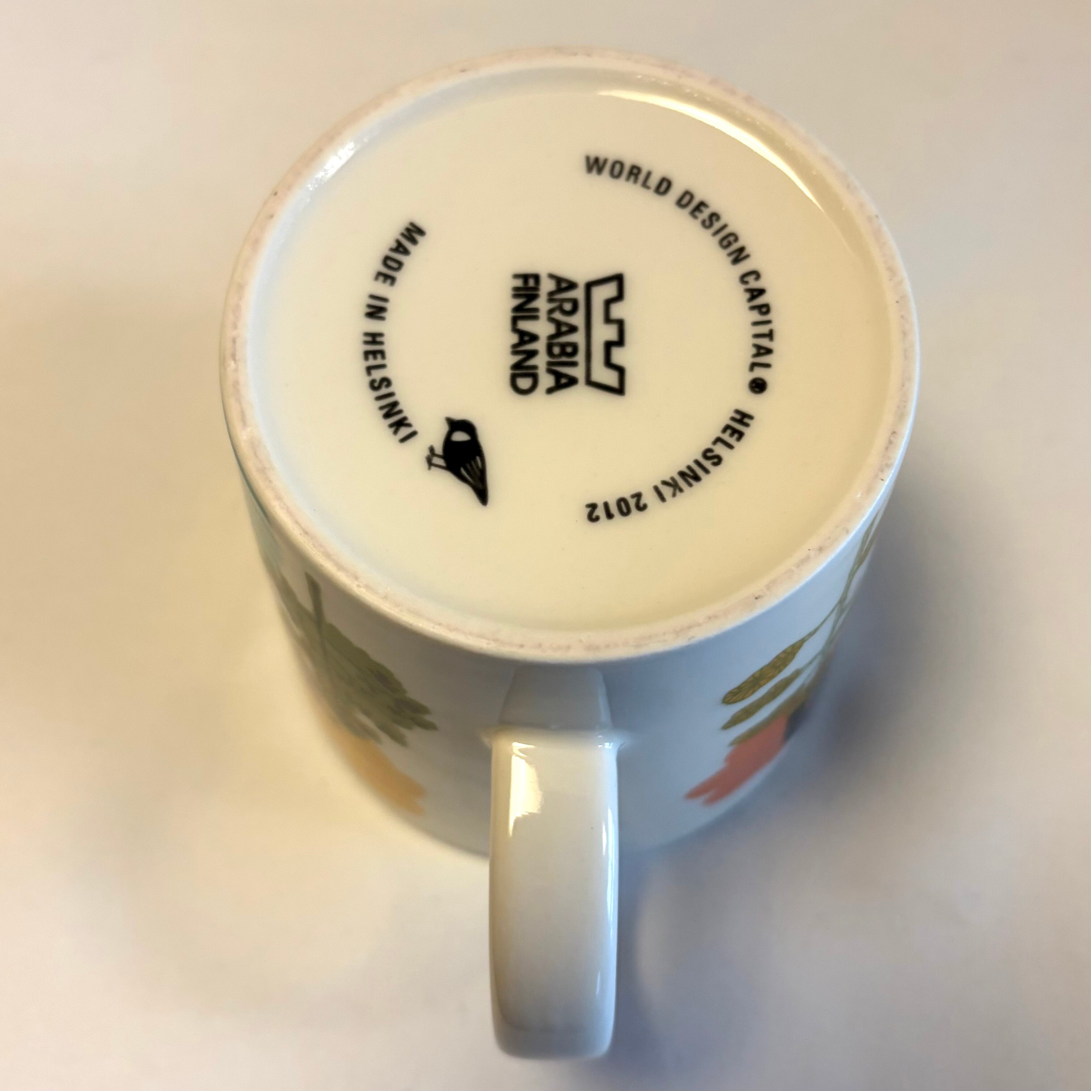 経年と置いて付いたような座のくすみは薄っすら見られるものの綺麗な状態と言えます。ARABIA ロゴ WORLD DESIGN CAPITAL・HELSINKI 2012 MADE IN HELSINKI 鳥さんマークのバックスタンプが嬉しい感覚です。