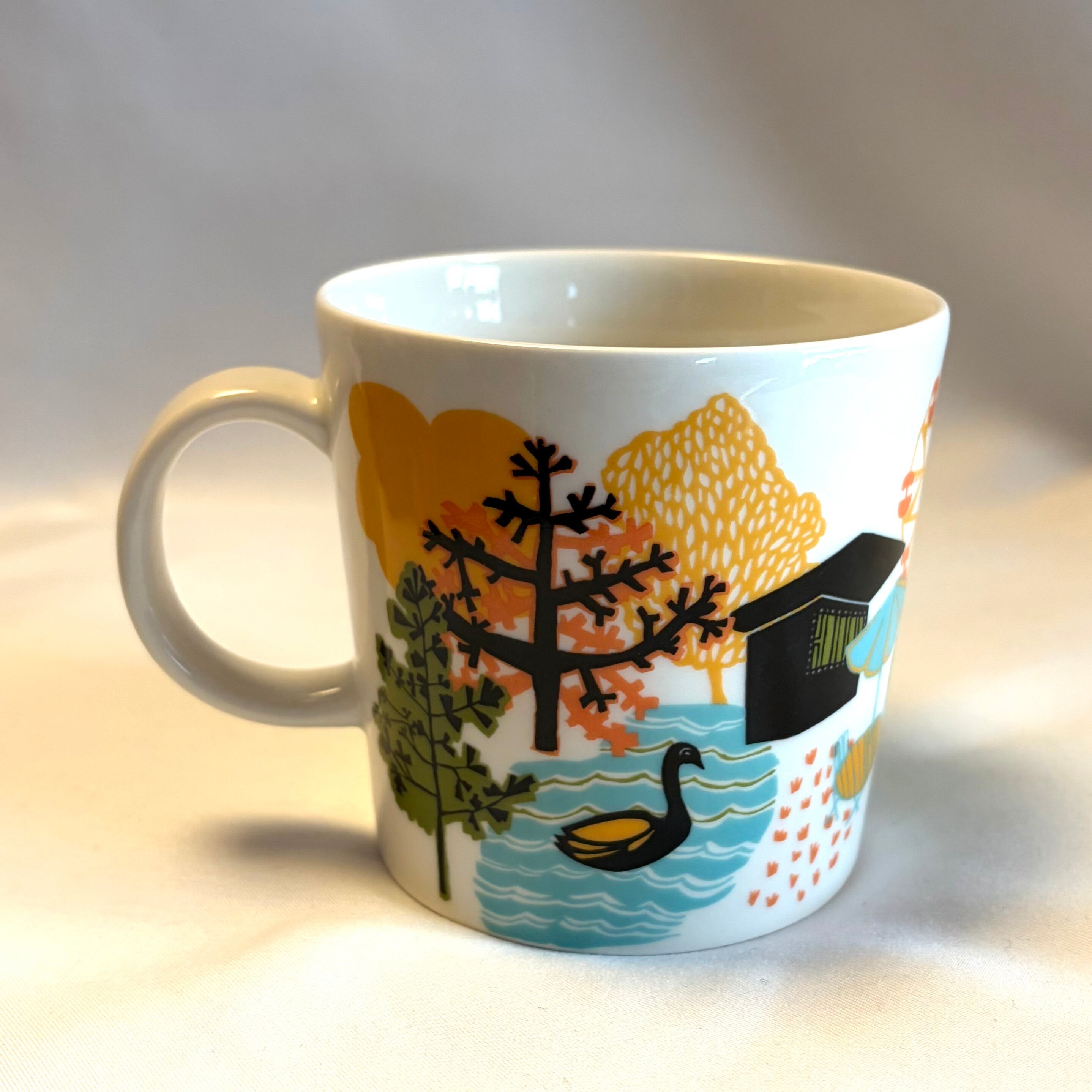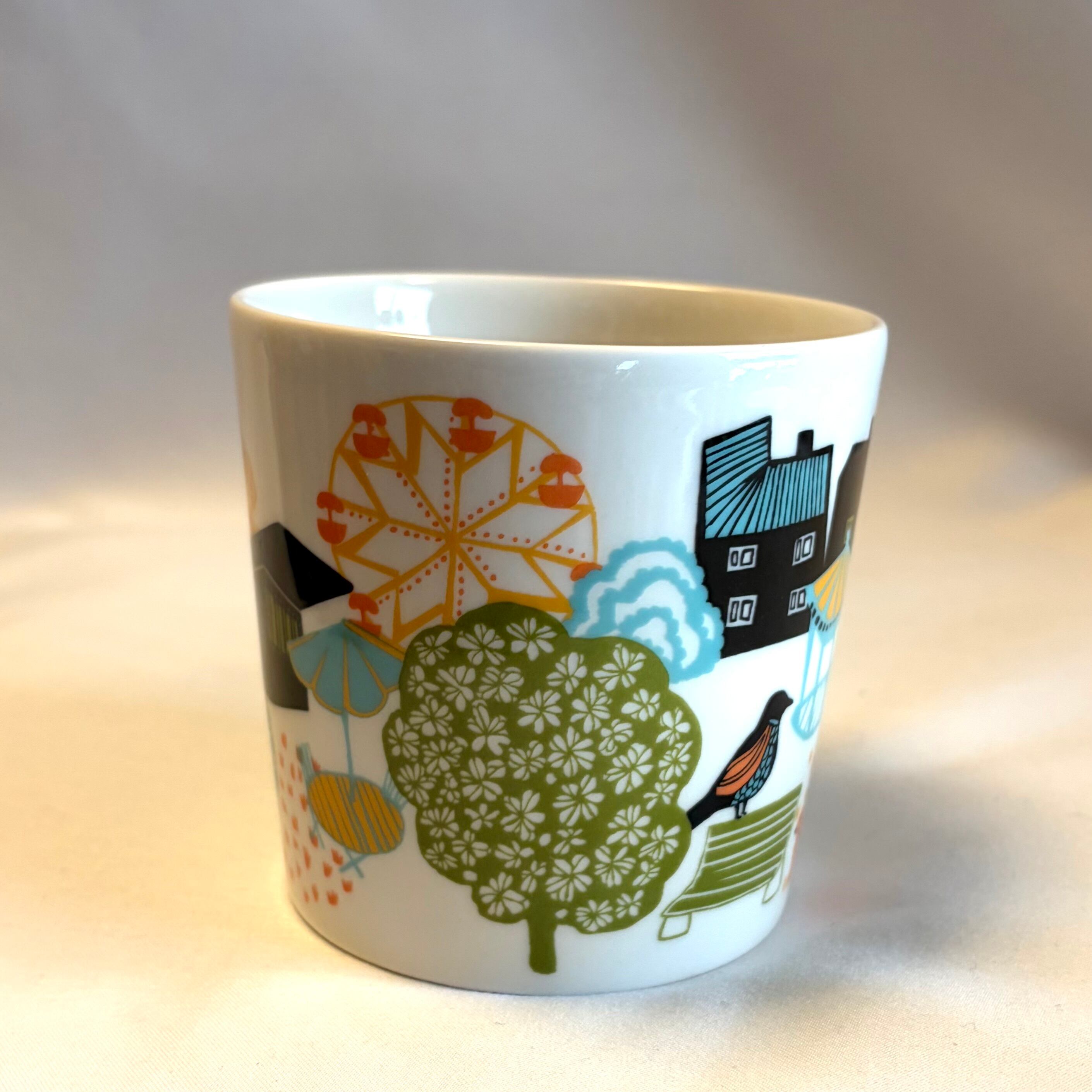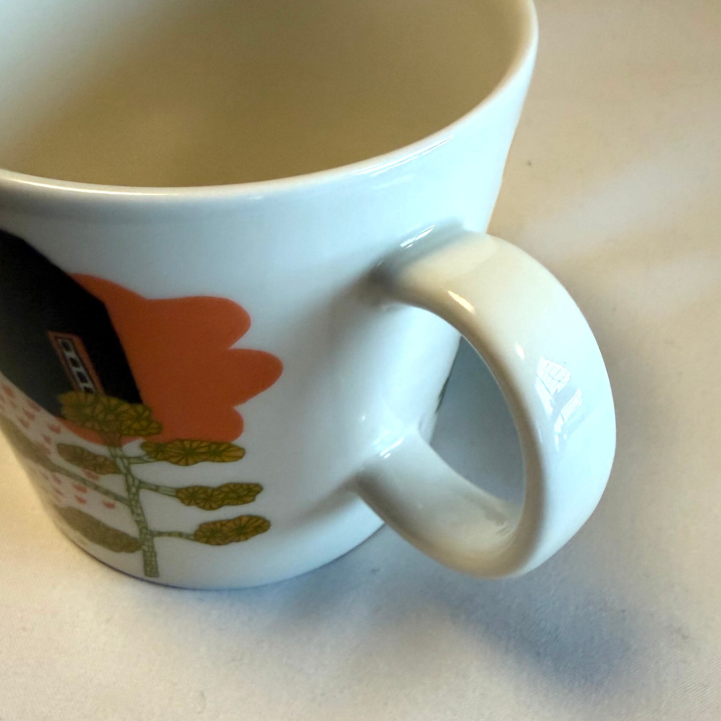 フィンランドで開幕する「ワールド・デザイン・キャピタル ヘルシンキ 2012」に向けARABIA 社に製作を依頼し、記念・限定で販売されたマグカップと思われます。同時に出品しているマグAと対のセットで素敵な箱に入って販売されたのかもしれませんが、今のところ定かではありませんので、単品で出品致します。予めご了承下さい。