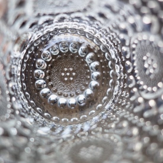 泡のような無数のツブツブが計算し尽くされているかの様に配され、光の加減によって様々な乱反射と陰影を放ち、表情豊かなデザインに仕上げてあります。