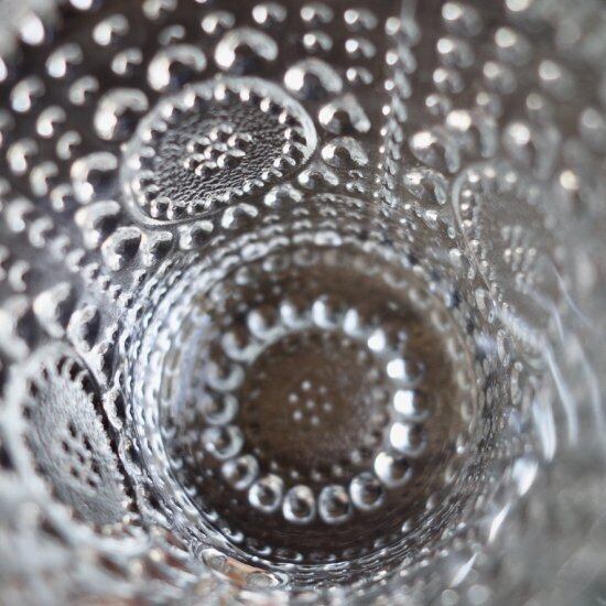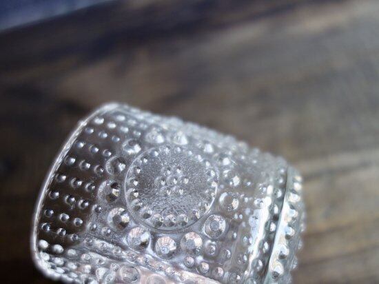 泡のような無数のツブツブが計算し尽くされているかの様に配され、光の加減によって様々な乱反射と陰影を放ち、表情豊かなデザインに仕上げてあります。