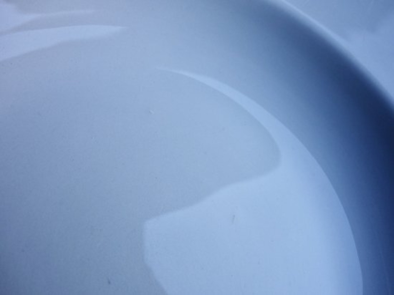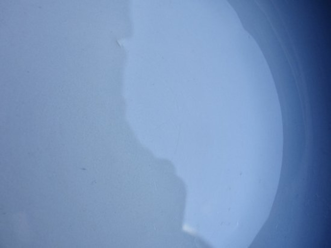 丸みを帯びた肉厚の縁をしております。釉薬ムラのようなゆらぎは少し感じますが、こすれや汚れなどあまり感じられず概ね良好な状態と言えます。