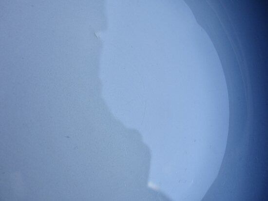 中央に高台があり、ボウル部分、リム部分と段々しています。釉薬ムラゆらぎ、薄らとしたこすれ、小さな点跡など(画像8,9)少し見られる箇所はありますが、擦れやキズのような跡など薄ら僅かに感じる程度で概ね綺麗な状態と言えます。高台内の中央に見慣れない Arabia ロゴなど(画像10)が少し刻まれるように記されています。※焼成時の支柱跡のようなものがいくつか見られる状態です。