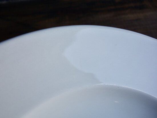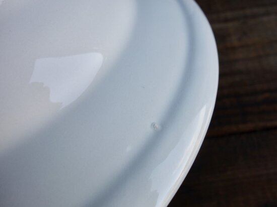 中央が凹みリムが広めのフォルムが美しいシンプルな器です。細かな擦れや細こすれ、カトラリー跡、薄汚れなど(画像3-5)の使用感は多少見られはするのですが、目立つ擦れ、キズ、汚れなど見当たらず比較的綺麗な状態と言えます。