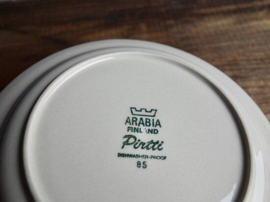 細擦れや座のくすみなど(画像6,7)薄ら少し感じる程度で概ね綺麗な状態と言えます。ARABIA 旧ロゴのバックスタンプが記されており、食洗機可とされています。