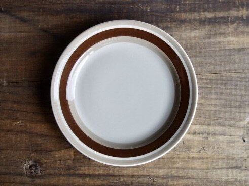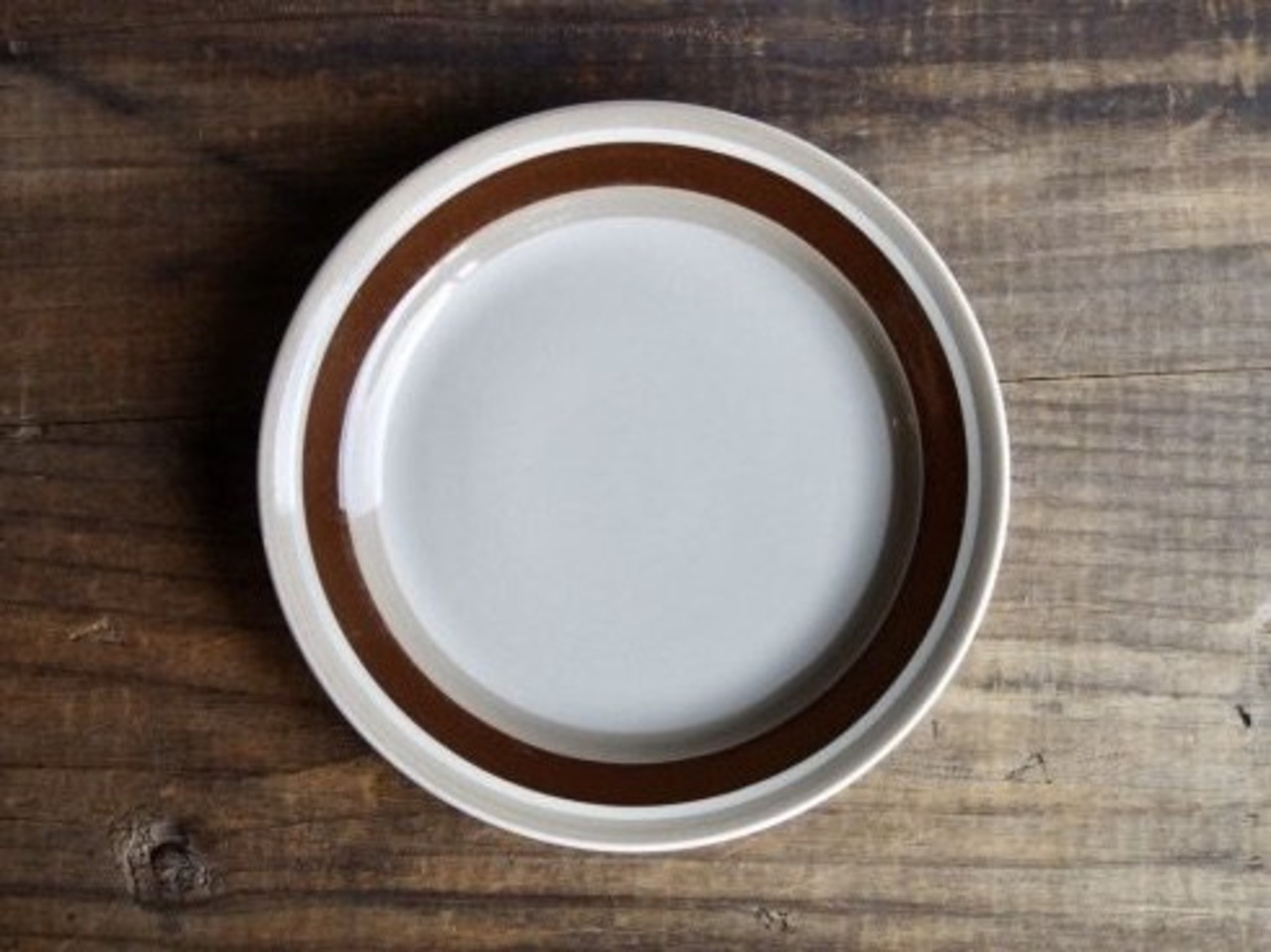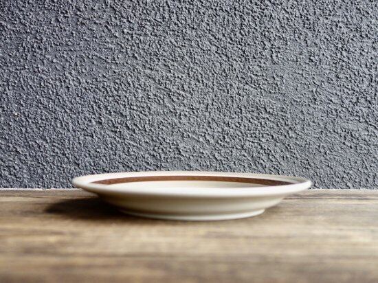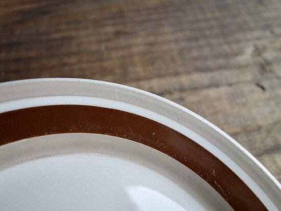 濃茶ラインに寄り添う様に薄茶色ラインが引かれ、さらに縁まわりにも薄茶色ラインが引かれ計3本お楽しみ頂けます。表層の細かな擦れやキズ、カトラリー跡、色褪せなど(画像3,4)の使用感はありますが、目立つ擦れ、キズ、汚れなど見当たらず比較的綺麗な状態と言えます。