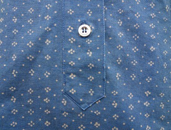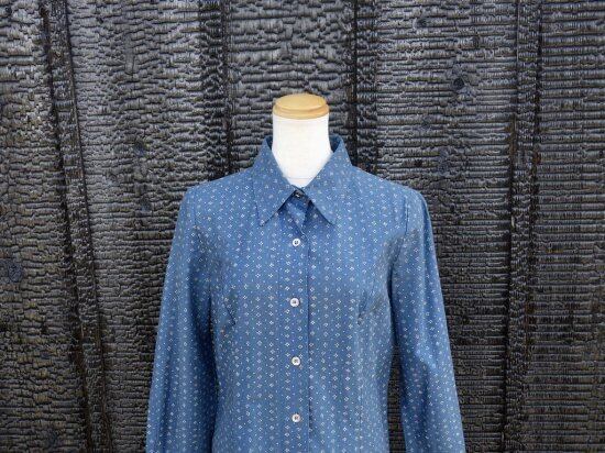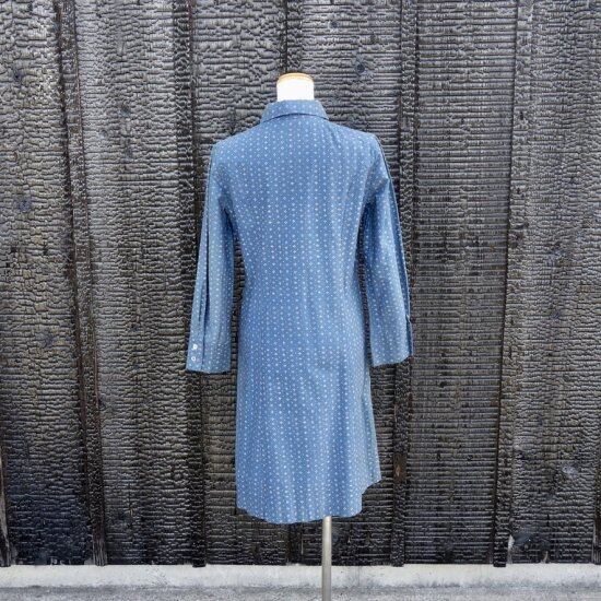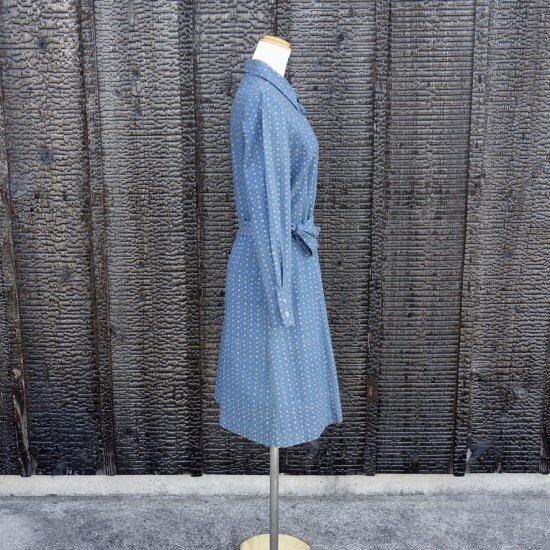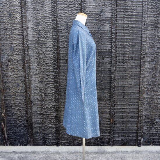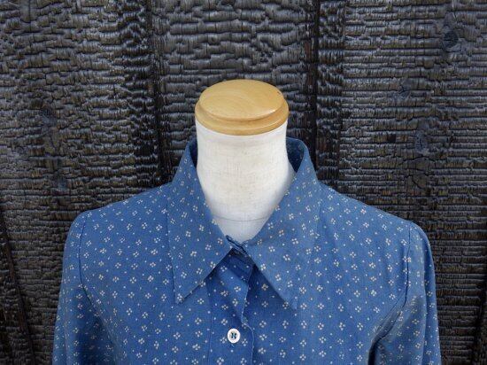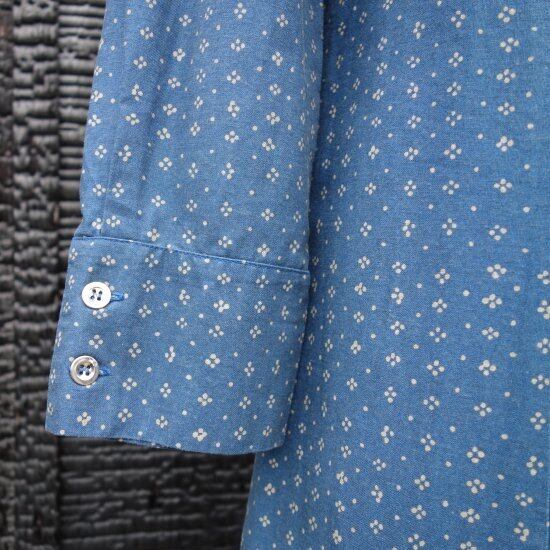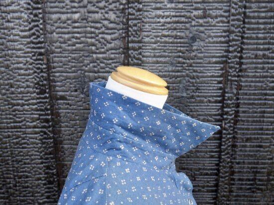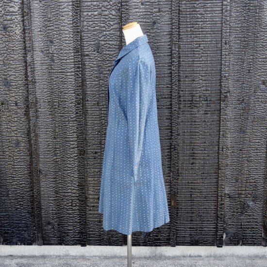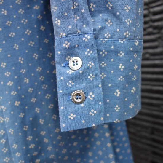 Blue muijaの柄や色味が美しく飽きのこないシンプルなドレスと言えます。経年による薄っすらとしたくすみは少し感じる箇所はあるものの着用感は殆ど感じられず、目立つ汚れ、生地の裂けや穴など見当たらず、長年の時を刻んで来た衣類として概ね良好な状態と言えます。