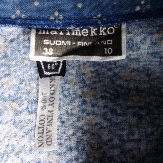 勝手ではございますが、MARIMEKKO OY FINLAND 1968年と記された正式なタグが付いておりピンポイントヴィンテージのお洋服と呼んでおります。